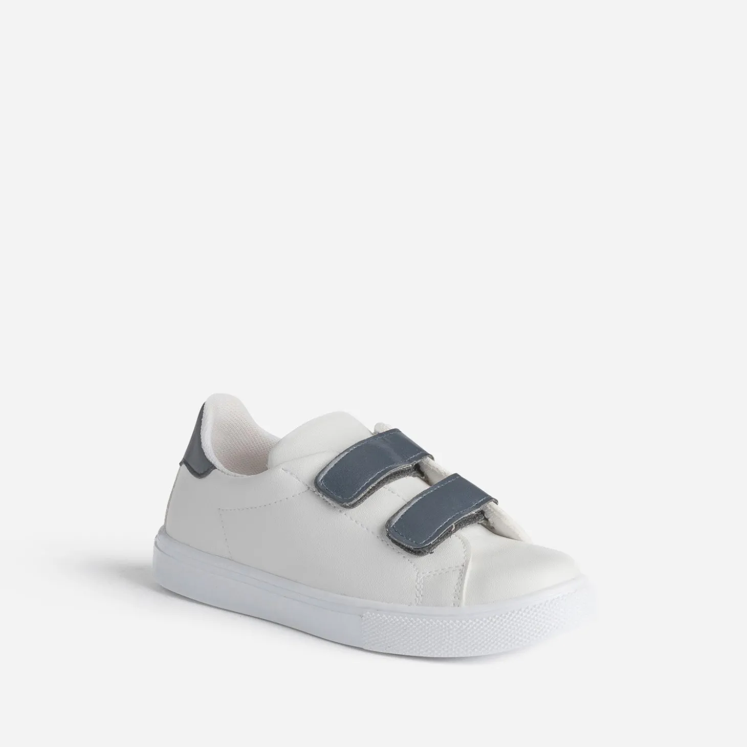 Matière synthétique lisse blanche, double scratchs marine, en écho au contrefort, la nouvelle tennis prône un retour à la simplicité. Un modèle mixte, facile à associer avec toute sa garde-robe.