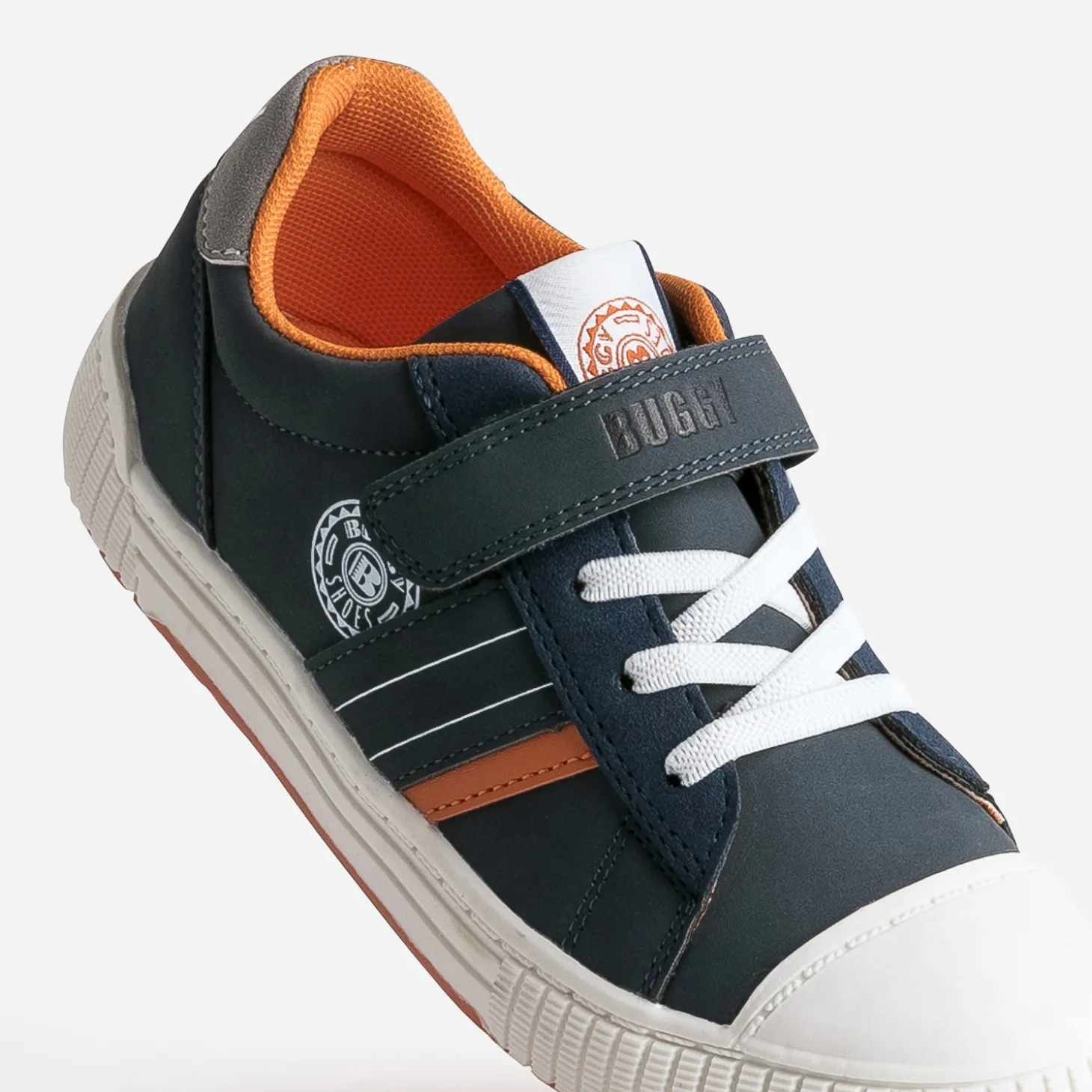 Bleu marine et orange : c’est le combo gagnant audacieux, exploité par cette tennis pour garçon. En matière synthétique, elle présente un bout renforcé et se ferme par un lacet élastiqué et un scratch, deux points majeurs pour l’accompagner dans toutes ses journées.