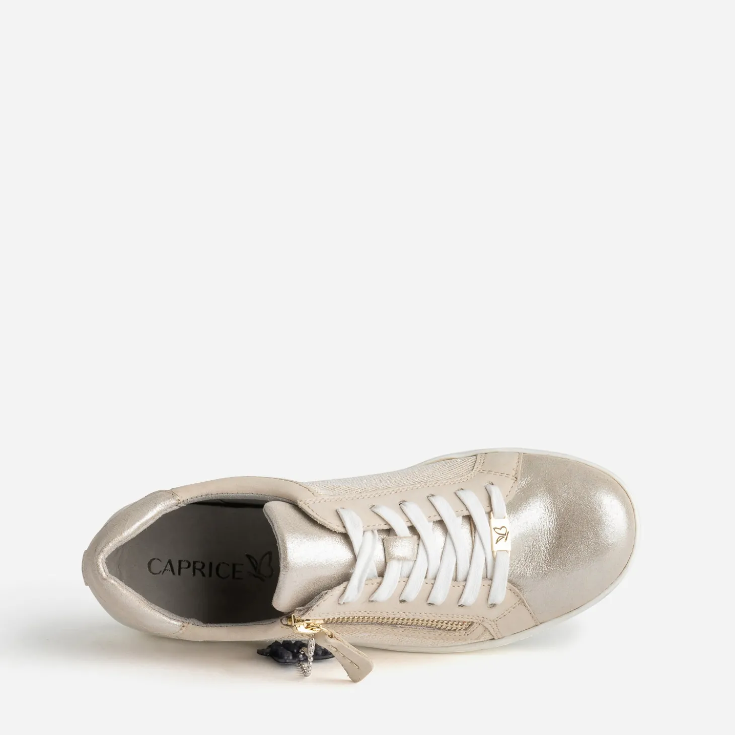 Découvrez le nouveau design de la tennis femme. Laissez-vous séduire par sa souplesse indiscutable. Mix de cuir et textile, elle est dotée de la technologie ‘onAIR’, garantissant un meilleur amorti et une aération optimale de la chaussure. Beige et dorée, elle présente une finition pailletée sur les côtés. Le laçage est renforcé par un système de fermeture complémentaire par zip extérieur. Un modèle idéal pour tous les jours, qui va vraiment soulager votre démarche.