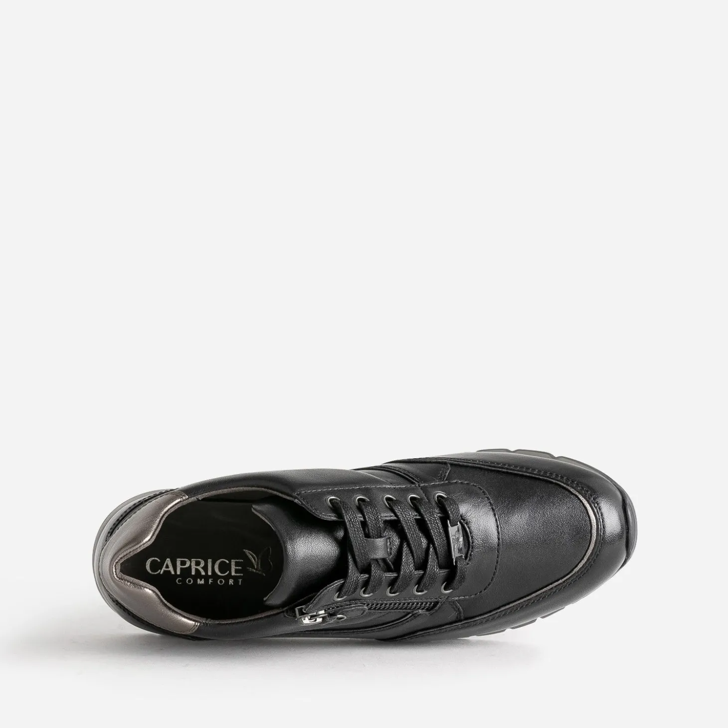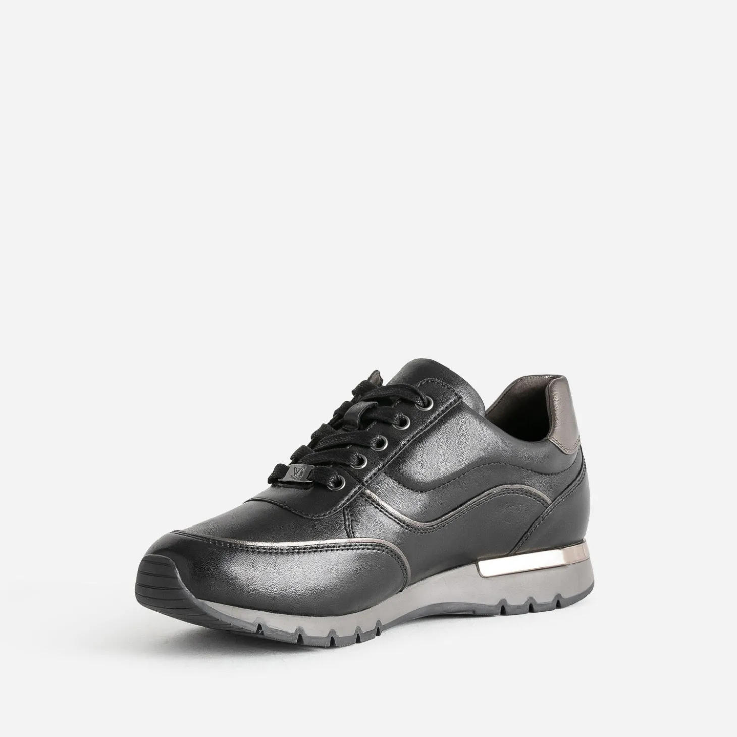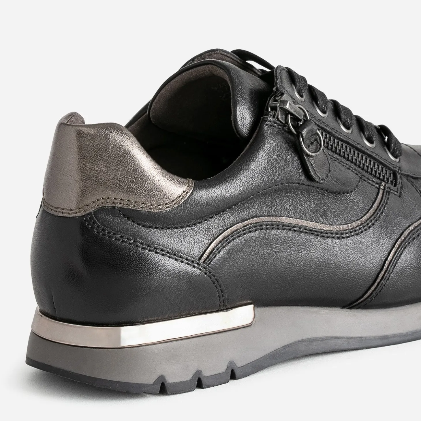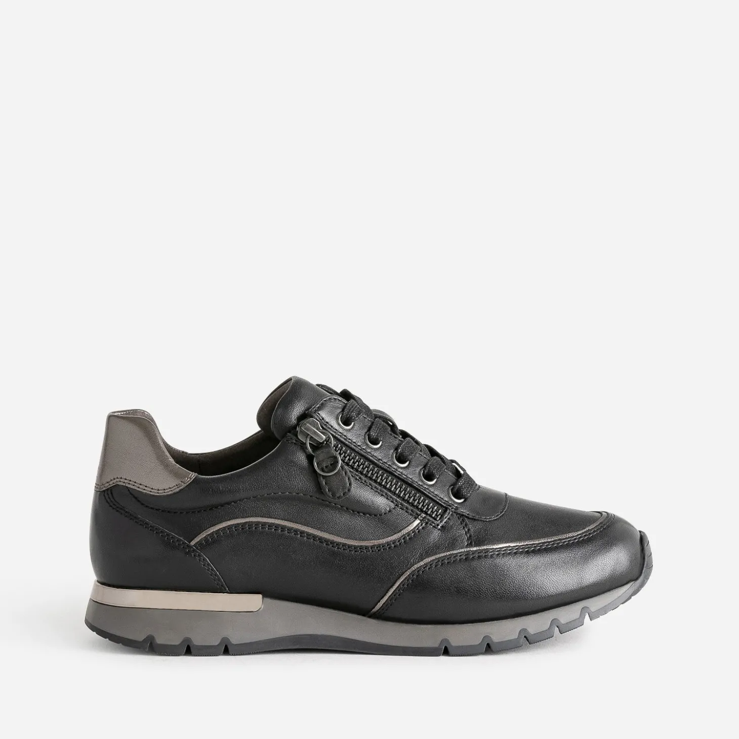 Vous aimez marcher ? Essayez cette nouvelle sneakers basse pour femme. D’abord pour sa doublure en cuir et pour sa première en cuir qui bénéficie de la technologie ‘onAIR’, garantissant un meilleur amorti et une parfaite aération de la chaussure. Montée sur une semelle sport, crantée pour une adhérence optimale sur toutes les surfaces, elle séduit par son cuir noir, souligné d’un contrefort bronze. Un modèle fermé par lacet et zip latéral à privilégier avec une tenue casual.