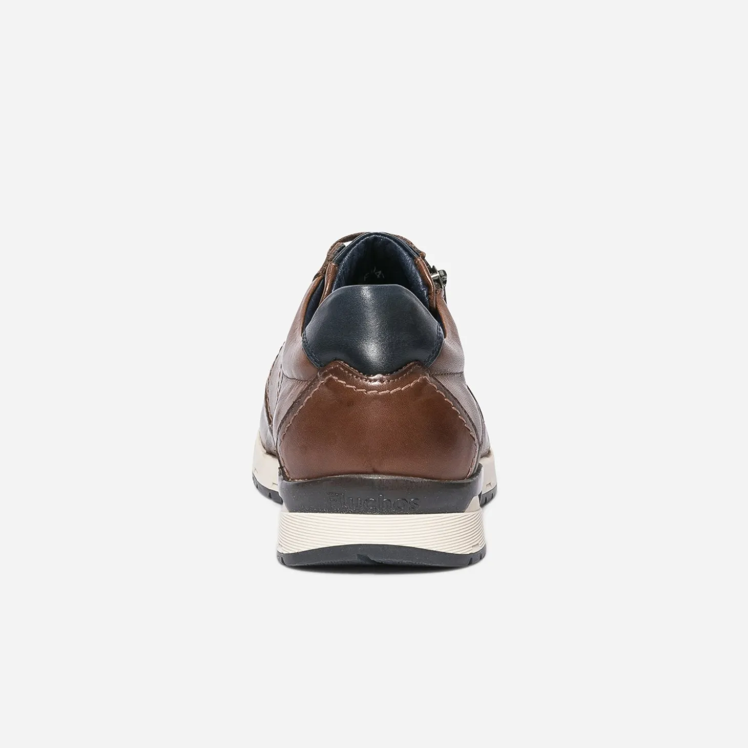 Adeptes des tennis en toutes circonstances ? Essayez ce modèle en cuir marron, rehaussé de touches marine sur la languette et le contrefort. Fermée par un lacet, elle possède aussi un zip sur le côté, pour faciliter l’entrée et la sortie du pied.
