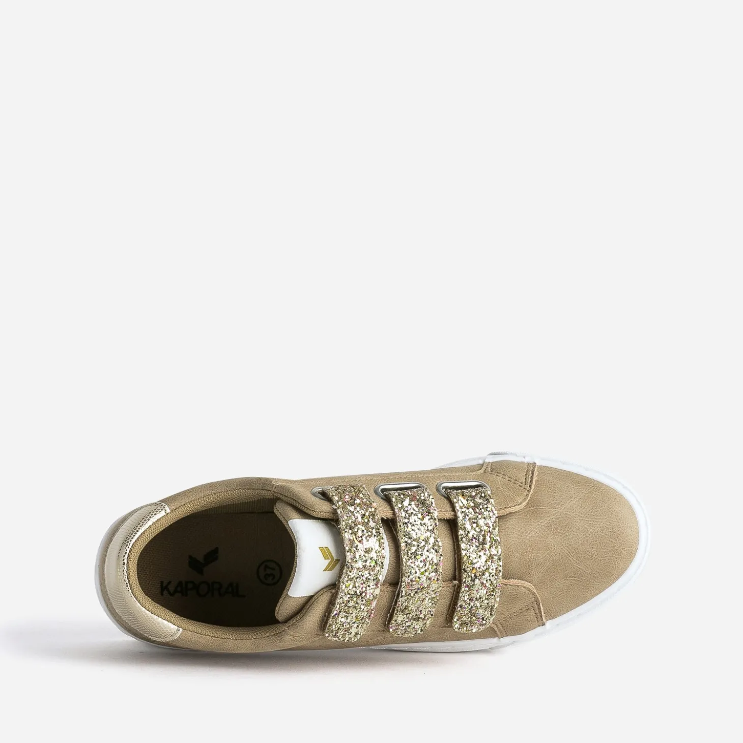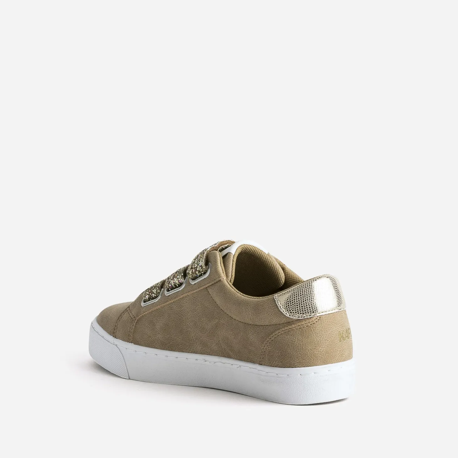 Cette tennis pour femme est une création qui mixe matière synthétique et textile. Déclinée en coloris camel, elle marque son originalité par une fermeture à 3 scratchs recouverts de paillettes dorées et un contrefort à embossage et imprimé effet python assorti. La marque affiche ses logos dorés sur le côté et le contrefort. Un modèle idéal dès l’inter-saison, avec un look dans les tons bleus ou naturels.