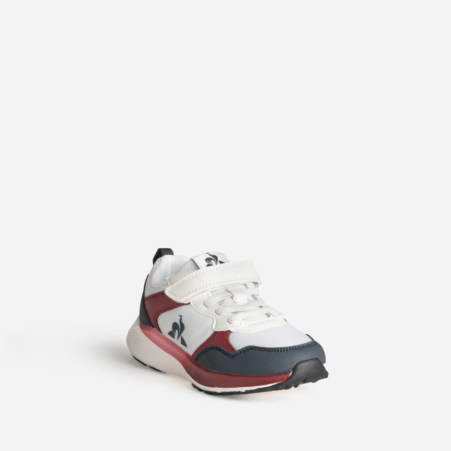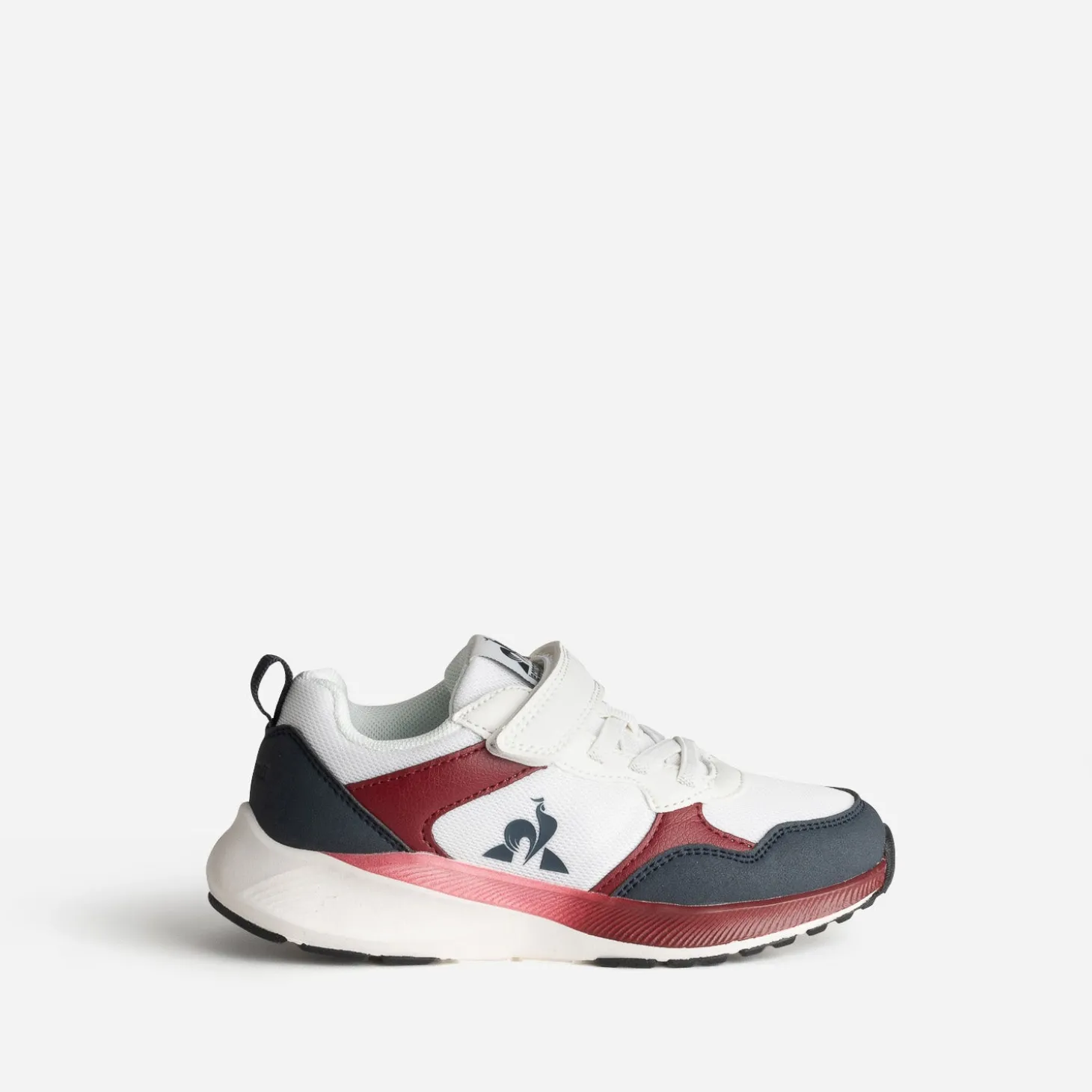 Du style, de la praticité. Quoi demander de plus pour chausser les enfants ? Cette tennis est une option sûre. Confectionnée en mesh et matière synthétique, elle associe le blanc, le bleu marine et le rouge foncé, dans une belle harmonie. Le côté de la semelle est mis en valeur par un dégradé de couleur. Les lacets plats élastiqués et la fermeture par scratch facilitent son utilisation et l’ajustement du pied, en toute autonomie. Un modèle confort, à porter, au quotidien, avec des tenues décontractées ou sportives.