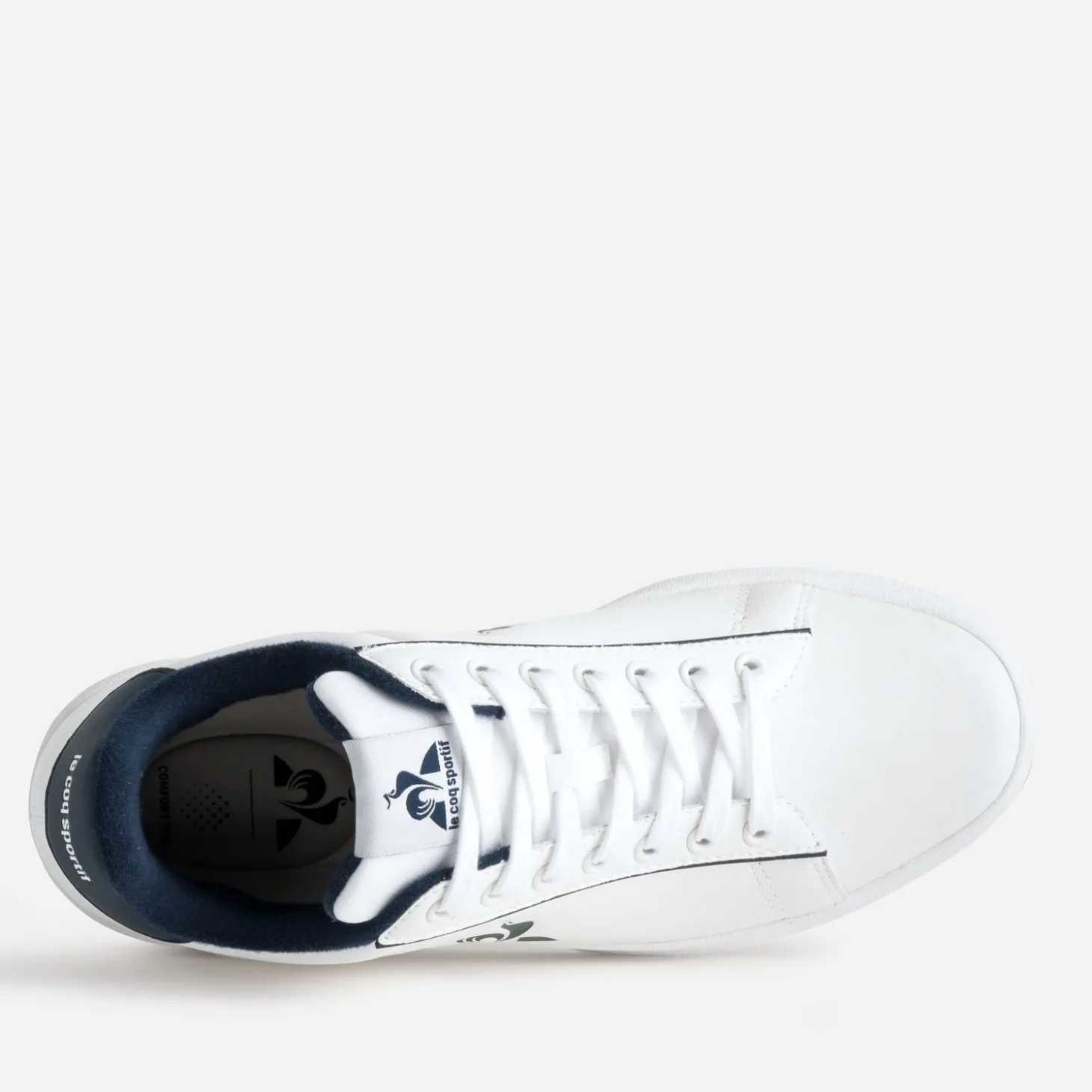 Sur cette tennis pour homme, le duo de blanc et bleu marine s’autorise toutes les fantaisies : doublure couleur, logos embossés sur les côtés et le contrefort, étiquette sur la languette. Son atout ? Une semelle intérieure à mémoire de forme. Un modèle phare pour finaliser vos looks sportswear, avec style et confort.