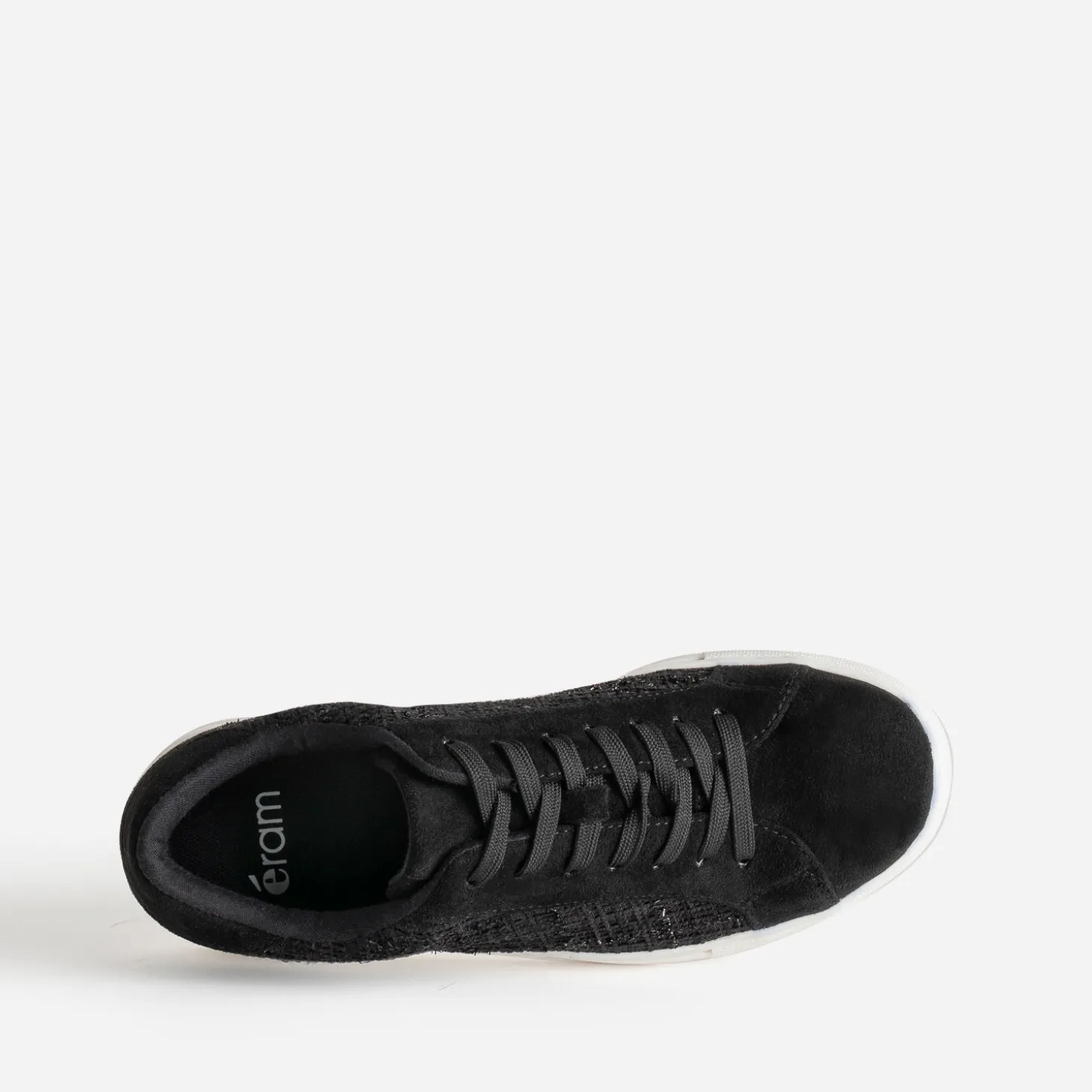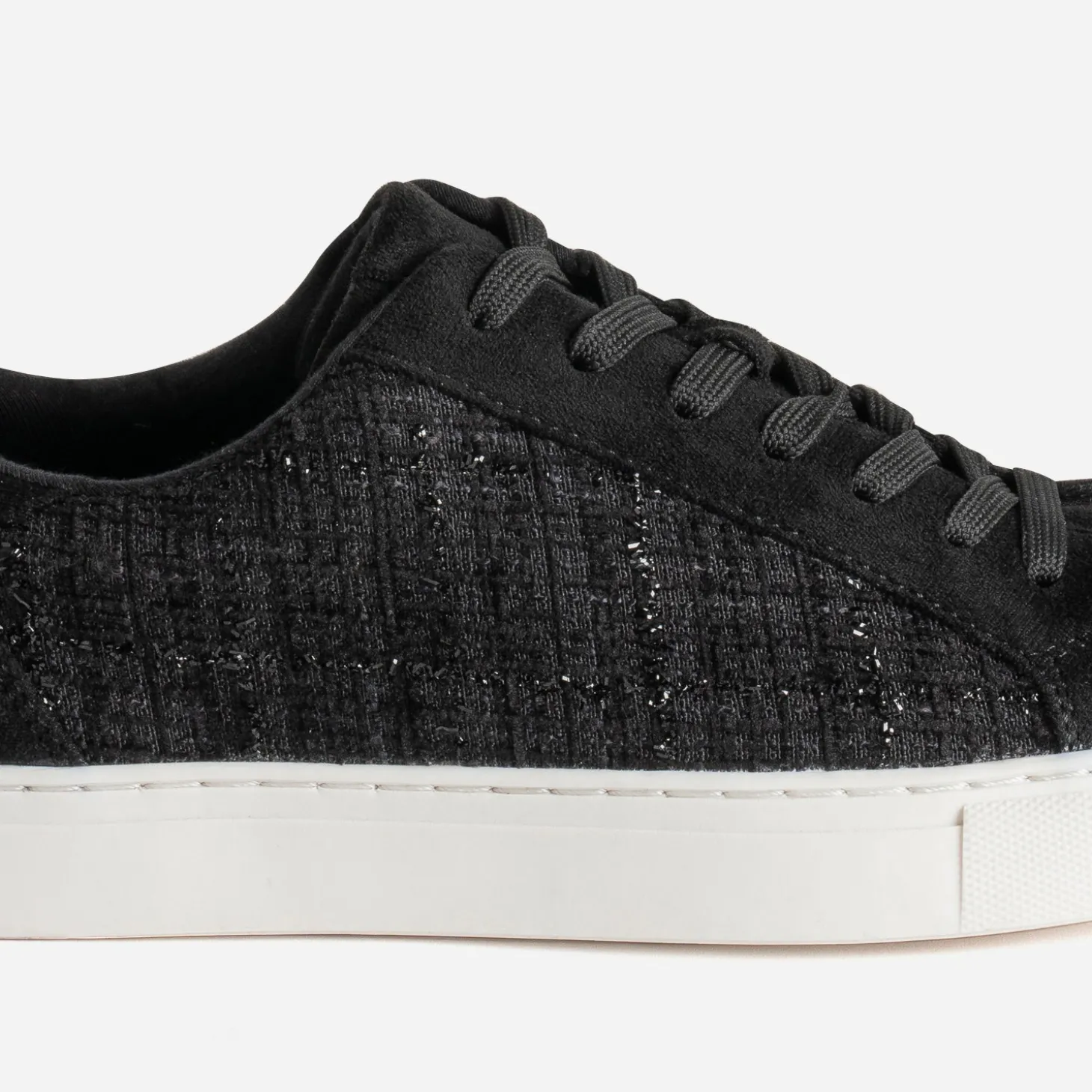 Faites entrer la tennis dans vos looks du quotidien. Noire, elle associe un textile à motif carreaux pailletés sur les côtés à une matière synthétique suédée sur le bout, la patte de laçage et le contrefort. Un modèle facile à combiner, avec un total look black.