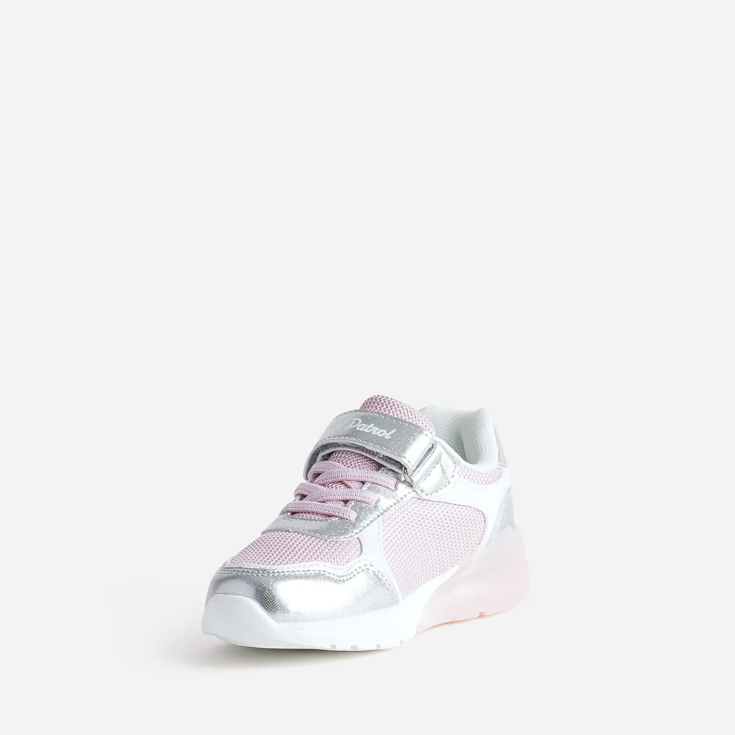 Du rose bonbon, de l’argent iridescent, un talon clignotant, et, le portrait de Stella, qu’elle aime tant. Comment résister devant cette tennis pour fille ? Appréciez son mix matières et son maintien par un lacet élastiqué et un scratch. Pas sûre qu’elle devienne spécialiste du sauvetage aérien, mais certaine qu’elle fera des envieuses dans la cour !