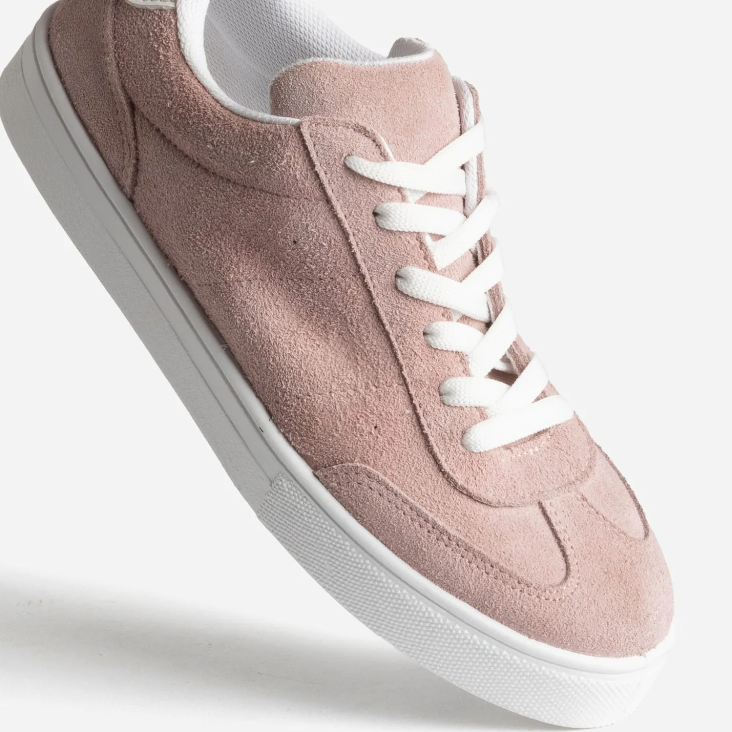 Les tons pastel sont les meilleurs complices de la saison estivale. Cette tennis pour femme se décline, par exemple, dans un coloris vieux rose, sur une base de cuir velours souple. Le contrefort blanc se fait l’écho du lacet, de la doublure et de la semelle. Testez-la avec du camel, du blanc, et toute la palette douce allant du bleu ciel au vert amande.