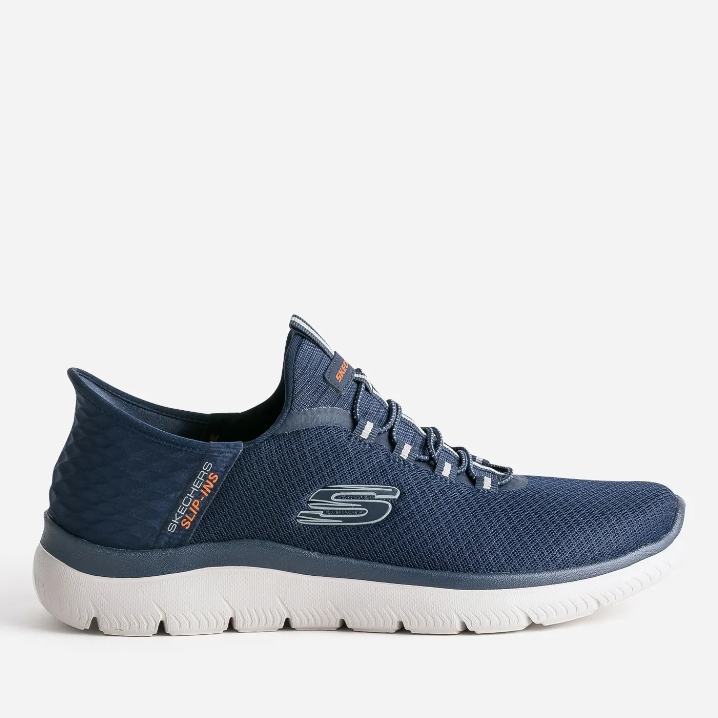 L’atout de cette tennis pour homme ? Son système Hands Free Slip-ins® qui permet de l’enfiler et de l’ôter rapidement ; le pied est tout de même maintenu grâce au système Heel Pillow™ exclusif et des lacets extensibles fixes. 100% vegan, elle est confectionnée en mesh et maille embossée, et dotée d’une semelle intérieure en mousse à mémoire de forme Skechers Air-Cooled Memory Foam®, à la fois confortable, aérée et coussinée. Un modèle lavable en machine, idéal pour le quotidien.