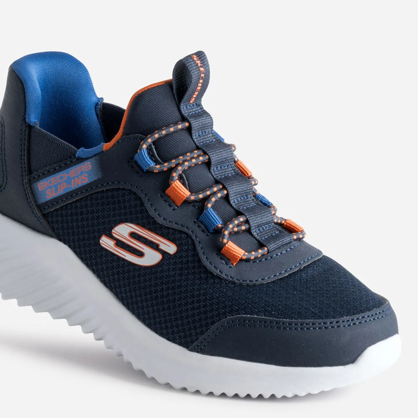 Du confort, du confort, du confort. C’est la promesse engagée de cette tennis pour enfant. En mesh bleu marine, elle est rehaussée de touches orange et bleu électrique, dans une belle harmonie. Conçue avec le Heel Pillow™ exclusif, elle s’enfile sans les mains, grâce aux lacets extensibles. La semelle intérieure en mousse à mémoire de forme Skechers Air-Cooled Memory Foam® est aérée et coussinée pour accueillir le pied. Un modèle qu’il va adorer porter au cours de sport jusque dans la cour de récré.
