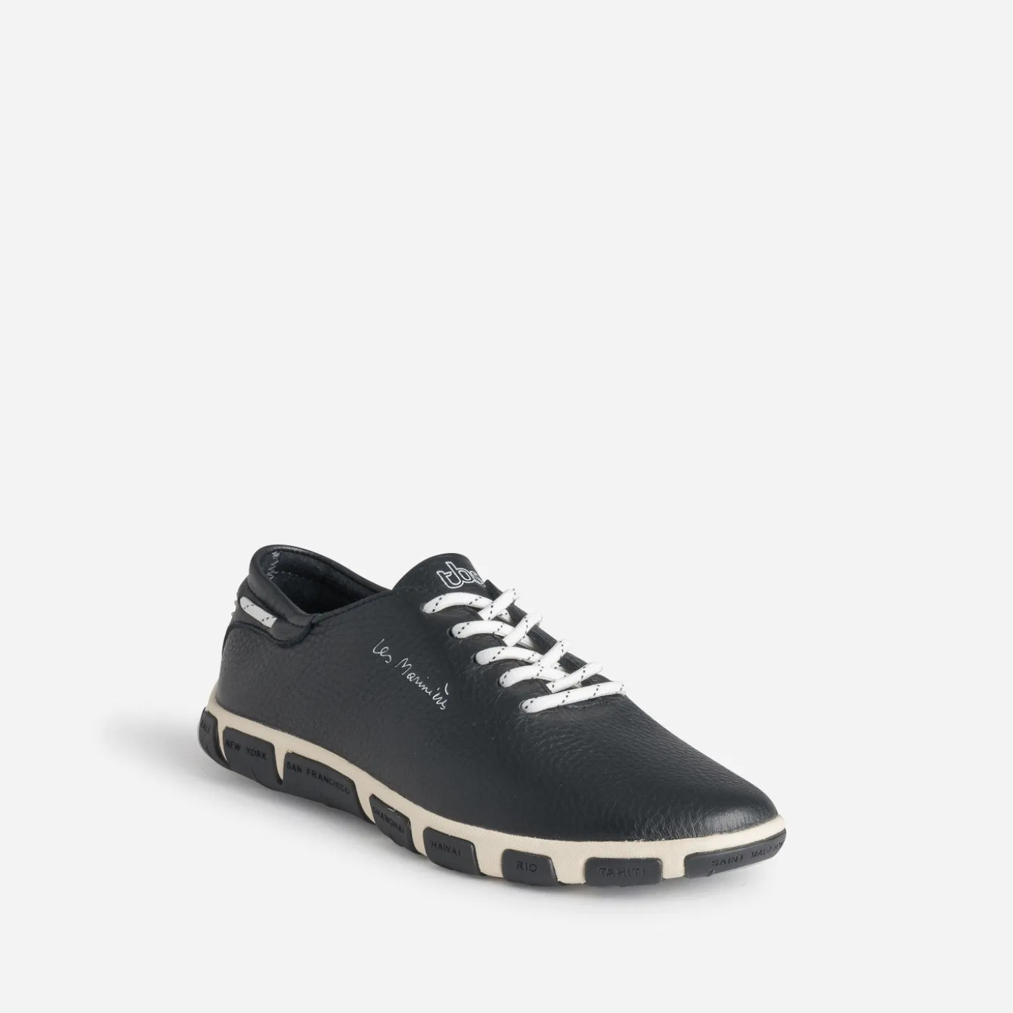 Adoptez, sans attendre, cette tennis pour femme en coloris bleu marine, avec lacet rond délicatement rayé et semelle bicolore. Signé ‘Les Marinières’, cet iconique de la marque conçu entièrement en cuir et non doublé, est reconnu pour sa légèreté, sa souplesse et sa résistance. New York, Hawaï, Saint Malo ou Hong Kong, voyagez le pied léger !
