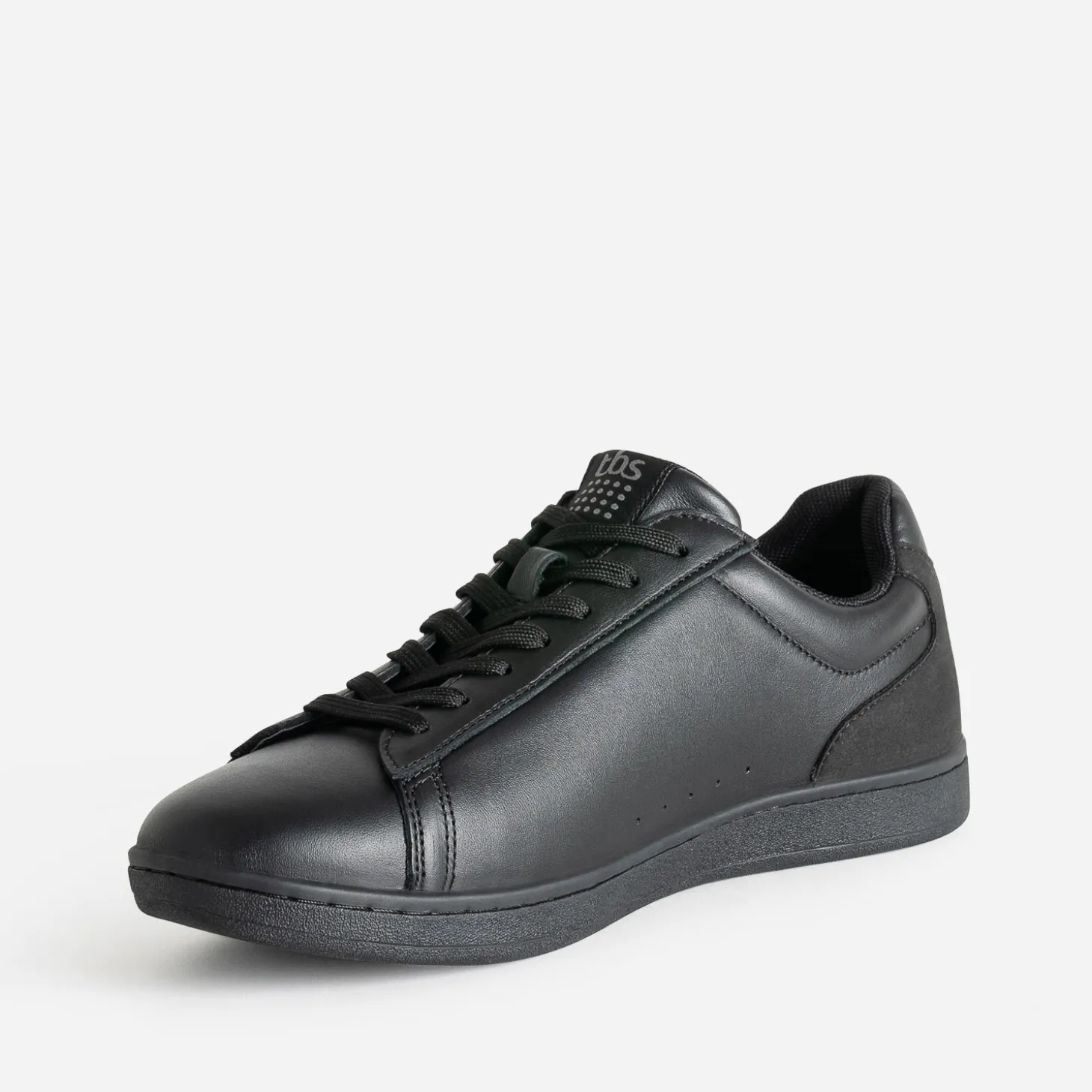 La tennis s’inscrit dans le shoesing quotidien des hommes depuis plusieurs saisons. En cuir noir, elle opte pour une ligne minimaliste, avec fermeture par lacet et zip côté. Elle est soulignée d’un empiècement suédé sur le contrefort, et rythmée de perforations identitaires à 20 points sur le côté. Un modèle à associer avec un total look noir.