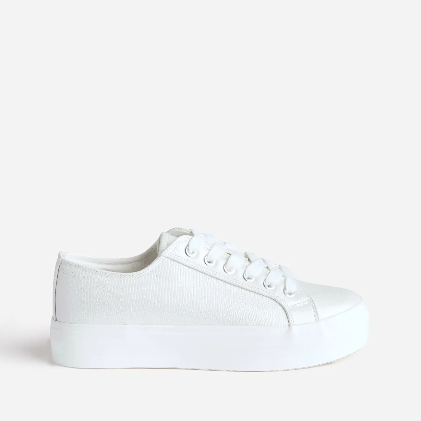 Ce blanc là, il est parfait. Légèrement irisé, il assure des looks décontractés. La tennis femme associe matière synthétique et embossage effet python, avec une semelle épaisse, pour s’inscrire dans la tendance du moment. Un modèle à privilégier à l’entre saison, avec un tee-shirt, un jean cropped et une veste en jean.