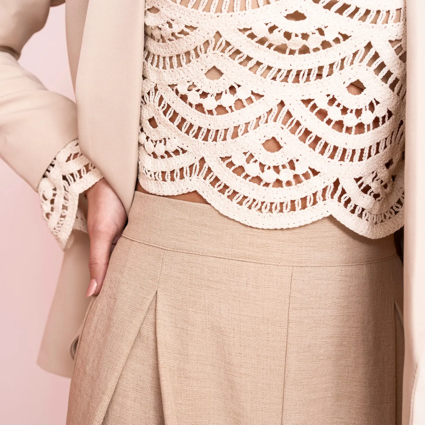 Impossible de faire plus bohème que ce top pour femme. Pièce incontournable de l’été, il est confectionné en coton écru ajouré façon macramé, associant un volume oversize et des manches-trompette. Imaginez-le sur un top à fines bretelles ton sur ton et un jean flare et une paire de sabots à talon.