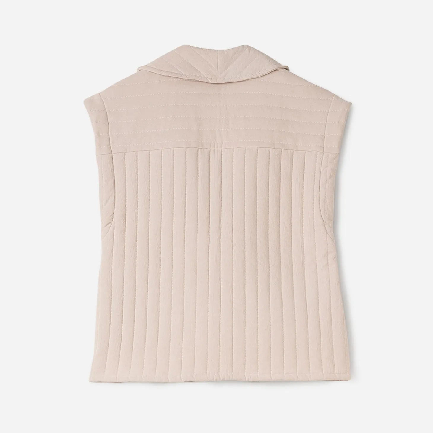 Vous avez aimé la tendance de la veste matelassée cet hiver ? Vous allez adorer la version d’été. Plus moderne, elle garde son matelassage, revisité sur un textile beige clair et sans manches. Une pièce idéale pour la mi-saison, à superposer sur un T-shirt et un jeans.