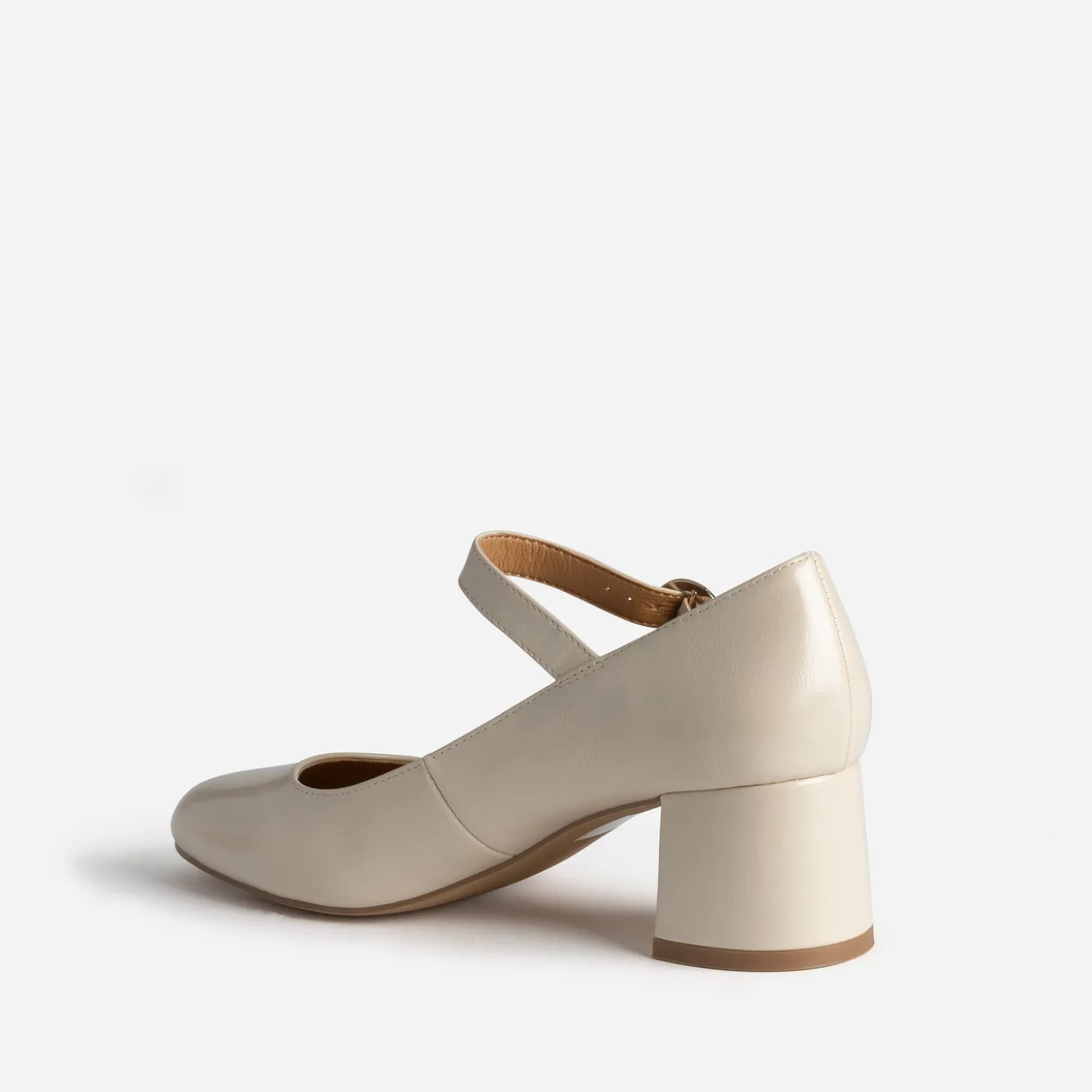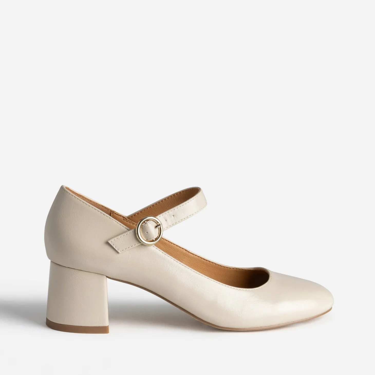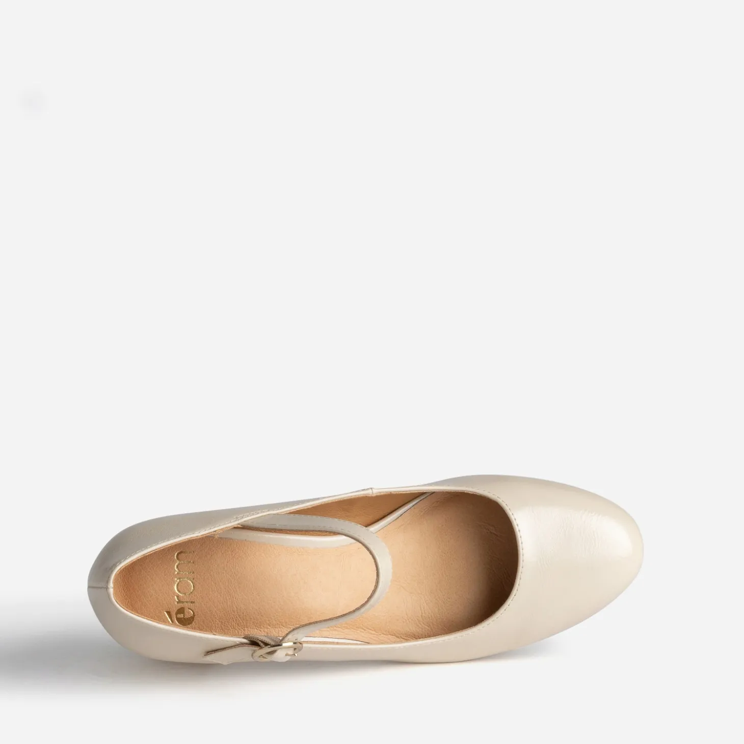 Bout rond, fine bride et boucle ronde, la recette d’une babies intemporelle qui fonctionne saison après saison. Dessus et doublure synthétiques composent la tige, posée sur une première moussée en cuir et un talon de 5 cm. Un modèle coloris beige d’une sobriété évidente, à porter de façon très classique ou à décaler avec un style baroque voire rock.