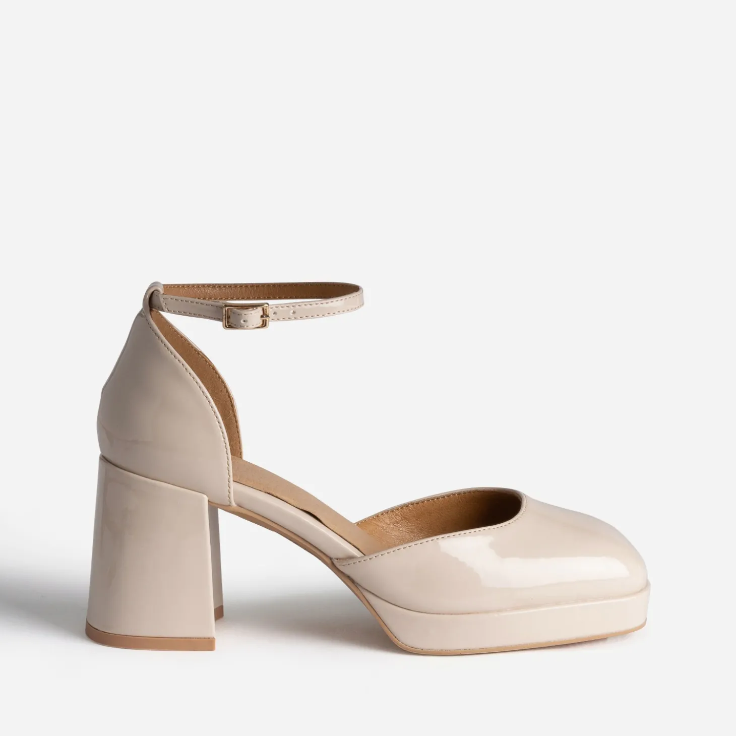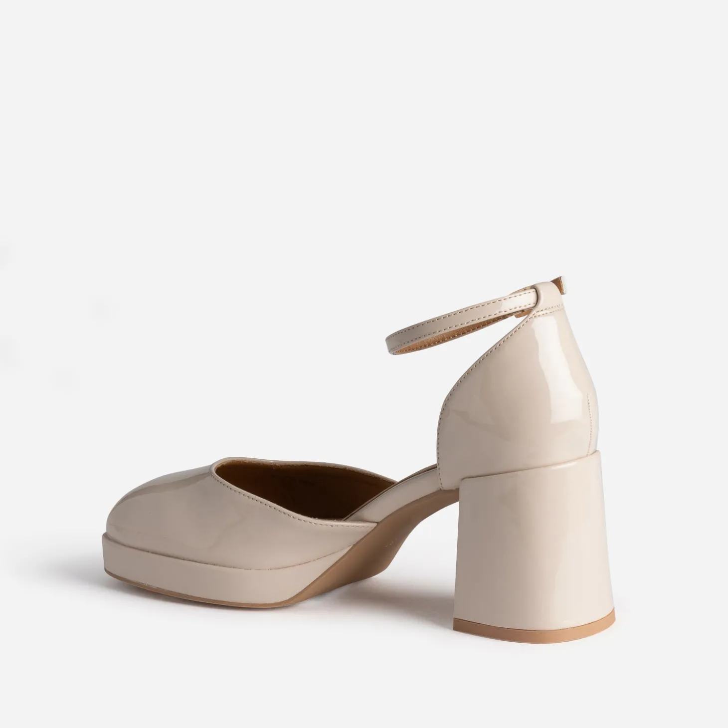Ouverte mais pas trop. Fermée juste ce qu’il faut. La babies est assurément la chaussure idéale, en toutes saisons. Identifiable à sa bride autour de la cheville, elle mise sur une inspiration rétro pour gagner en style. Coloris beige nude et finition vernie maîtrisée, elle présente un bout carré, un talon large de 7,5 cm et un patin avant d’1,5 cm, qui garantissent une bonne stabilité, et une semelle première moussée, au confort inégalé. Avec quoi la porter ? Avec une blouse parme et un pantalon flare violet, pour un esprit rétro et moderne à la fois.