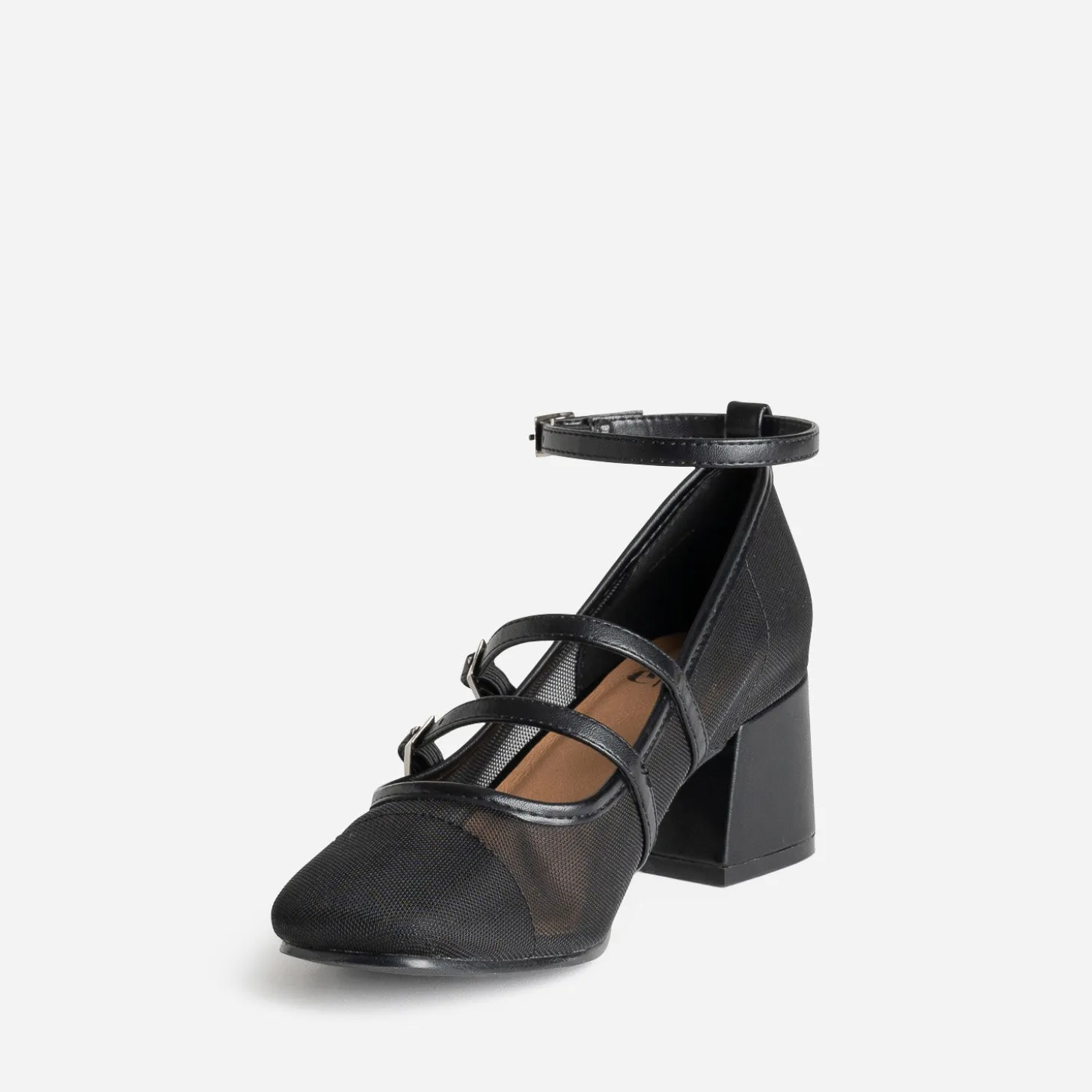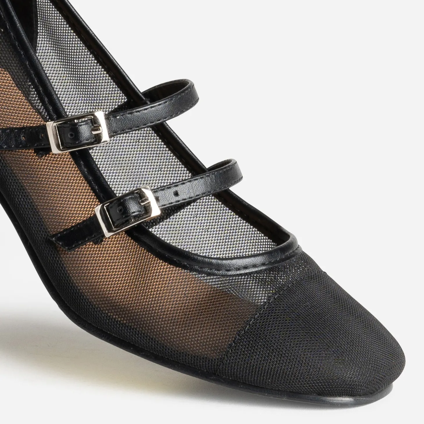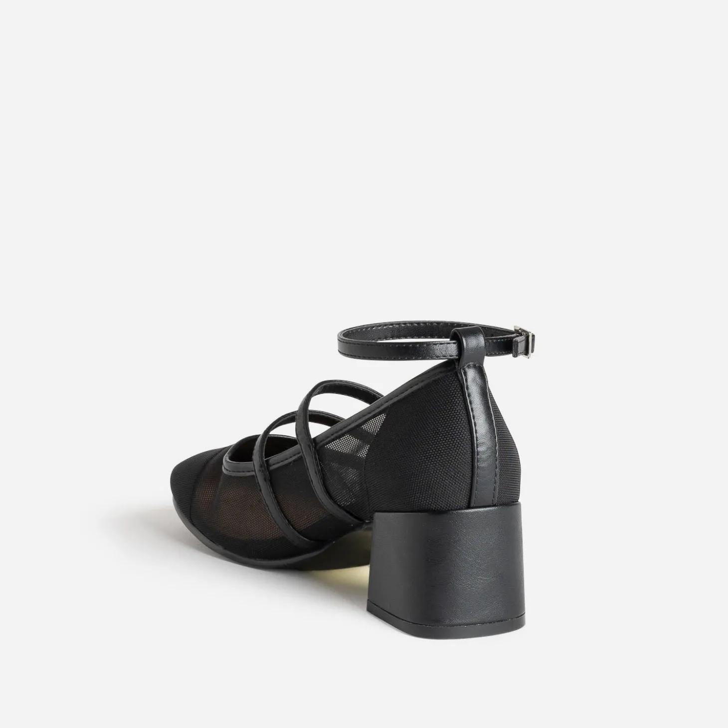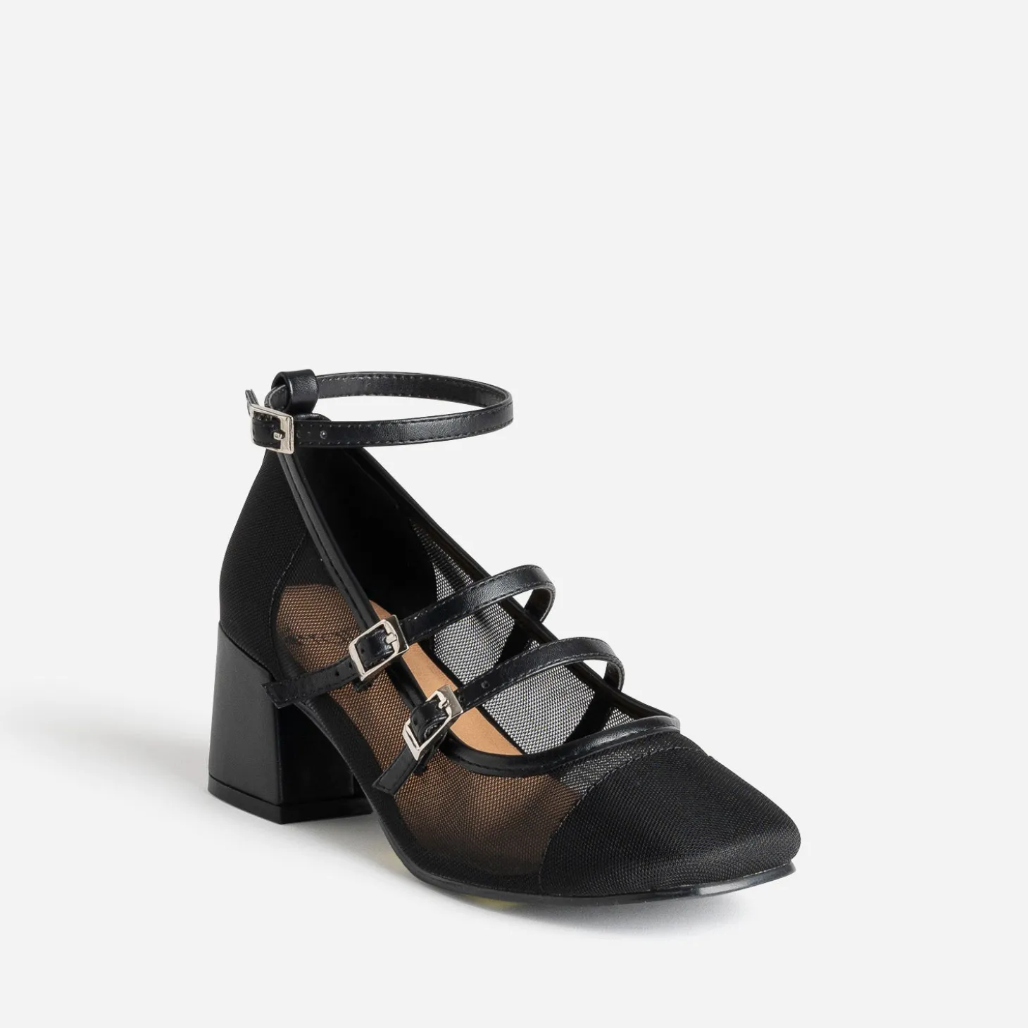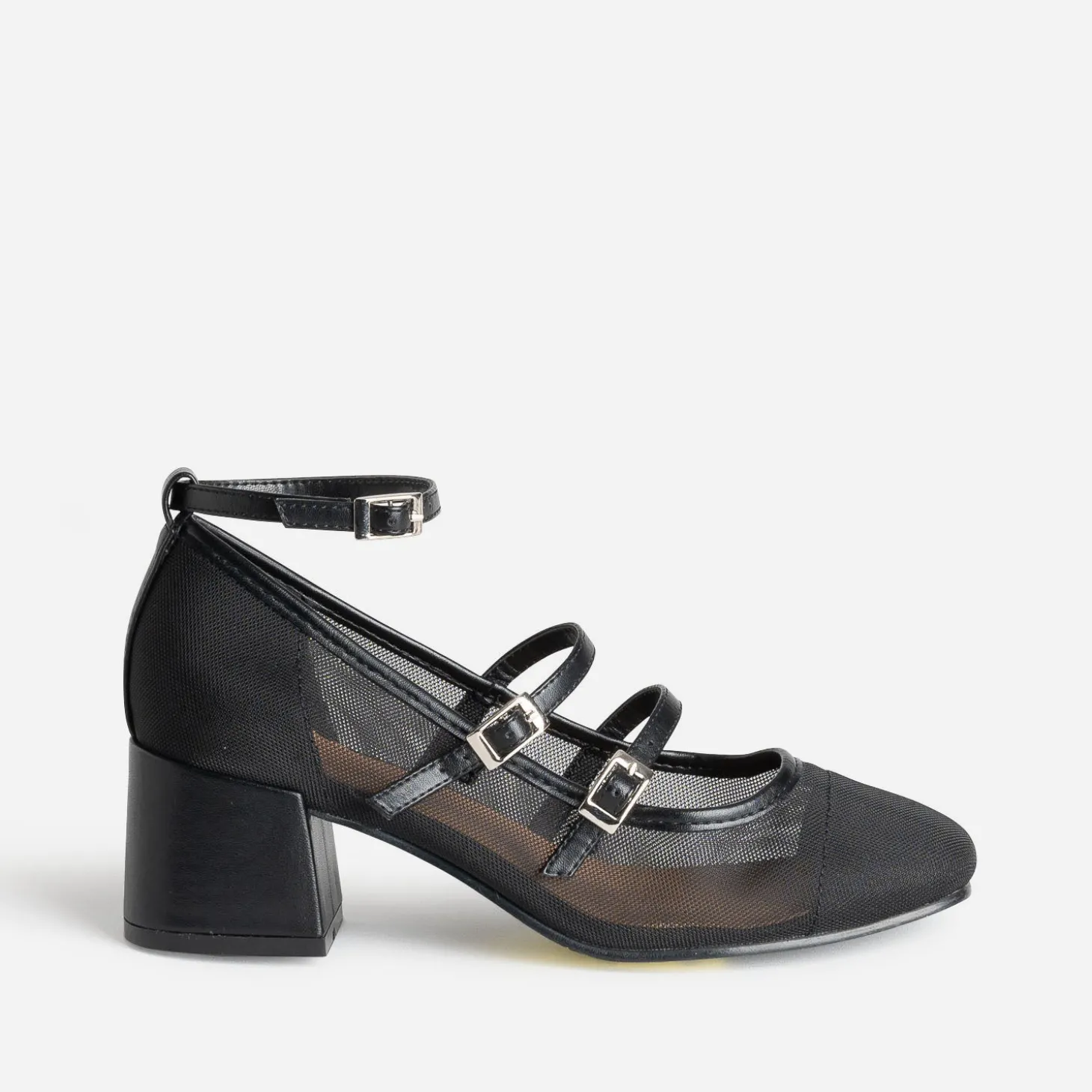 Faites un appel du pied… au printemps ! Optez pour la babies, revisitée dans une matière synthétique résille noire et maintenue par deux brides dessus et une bride autour de la cheville. Elle est montée sur talon flare de 5,5 cm. Un modèle à décaler avec un top en dentelle et un pantalon fluide cropped.