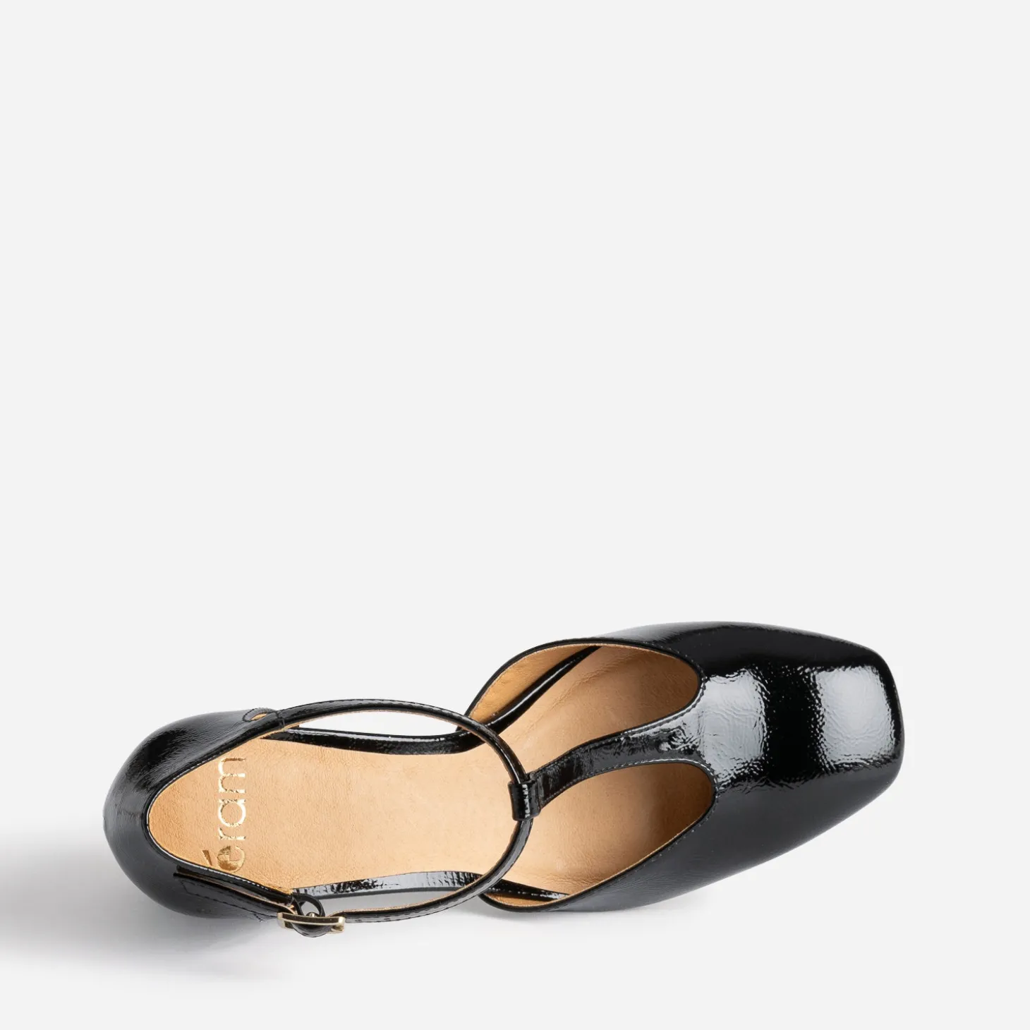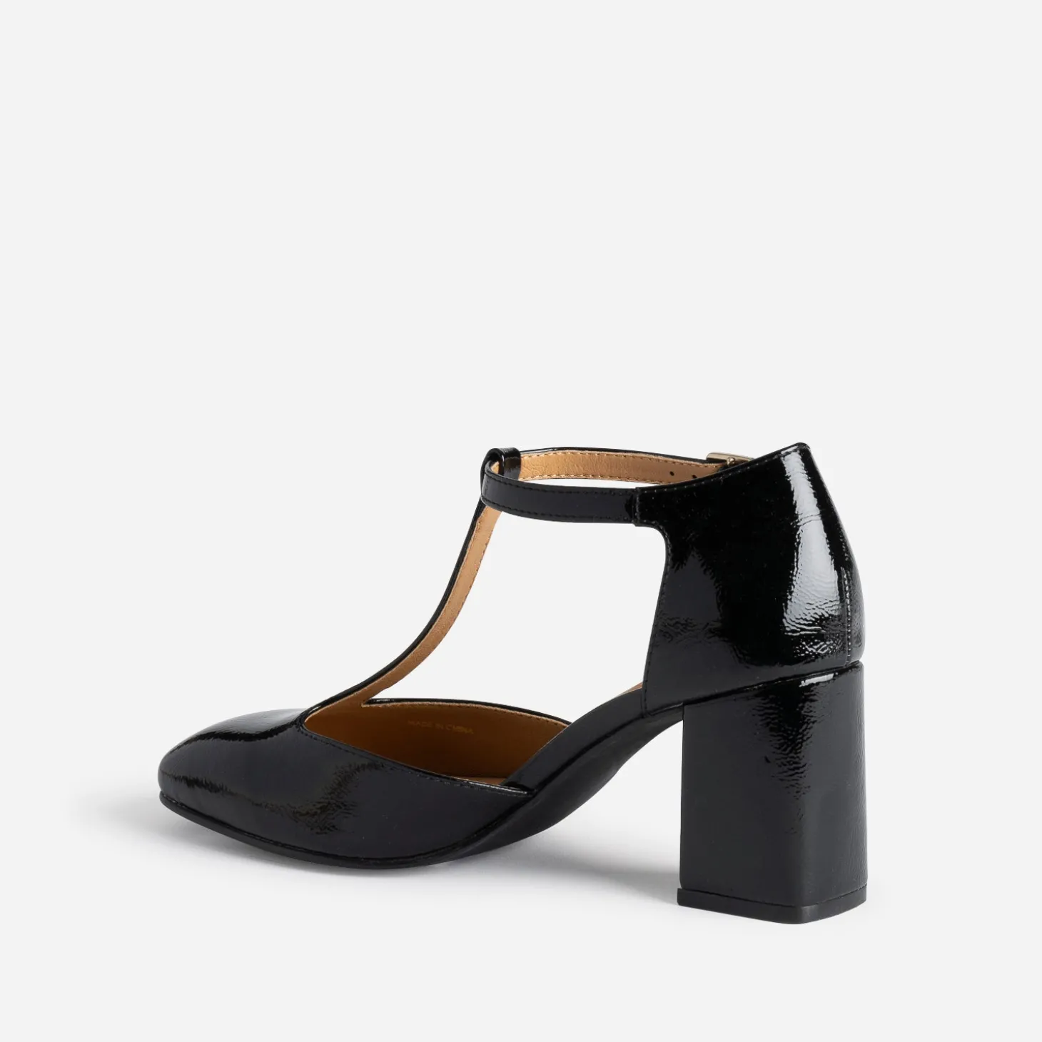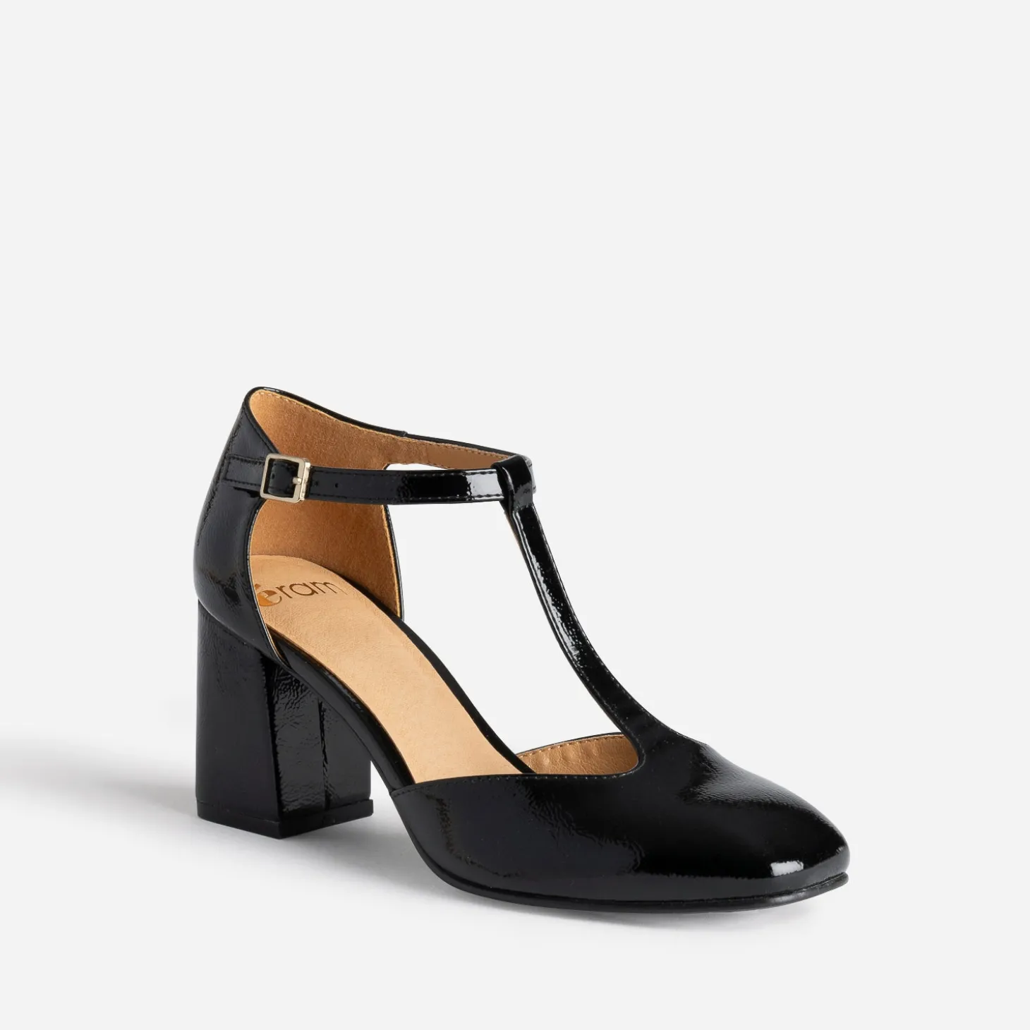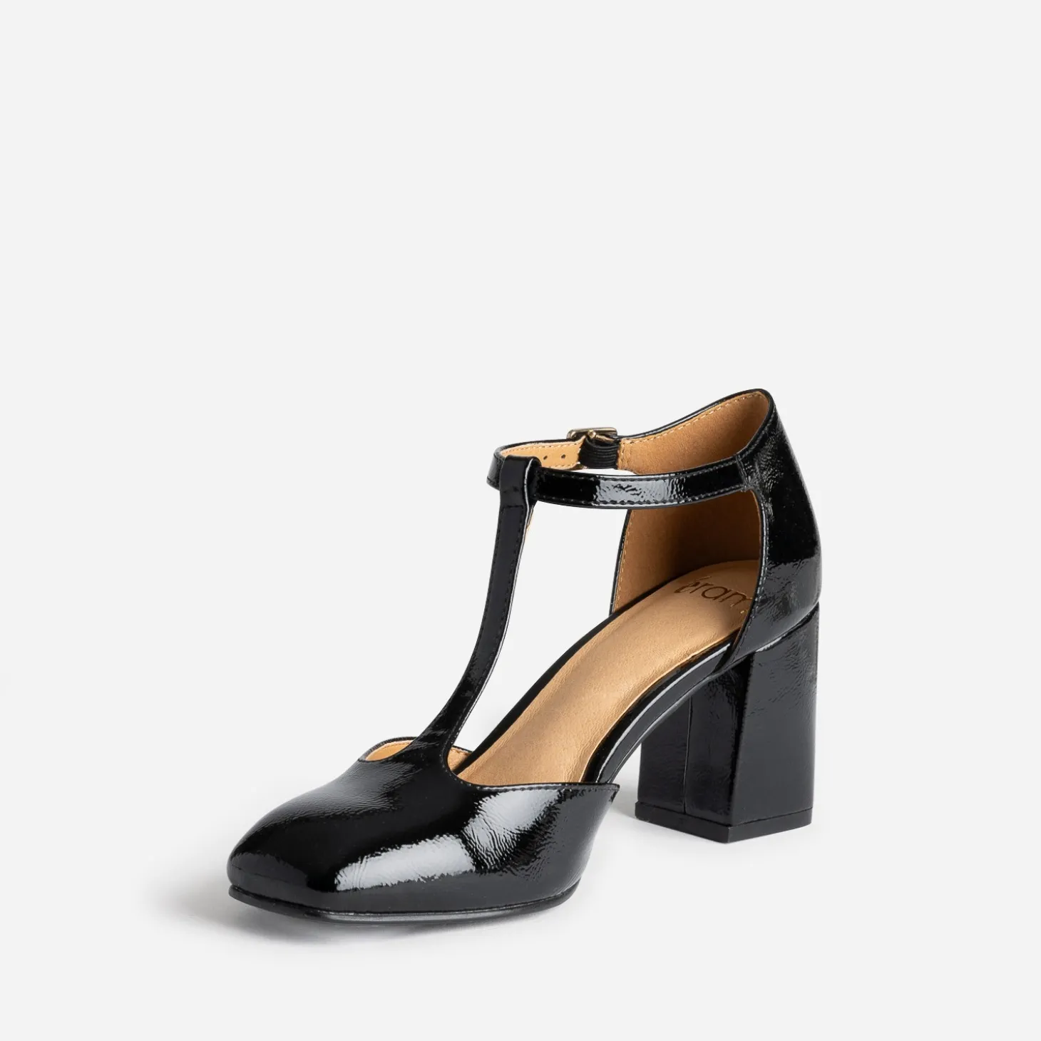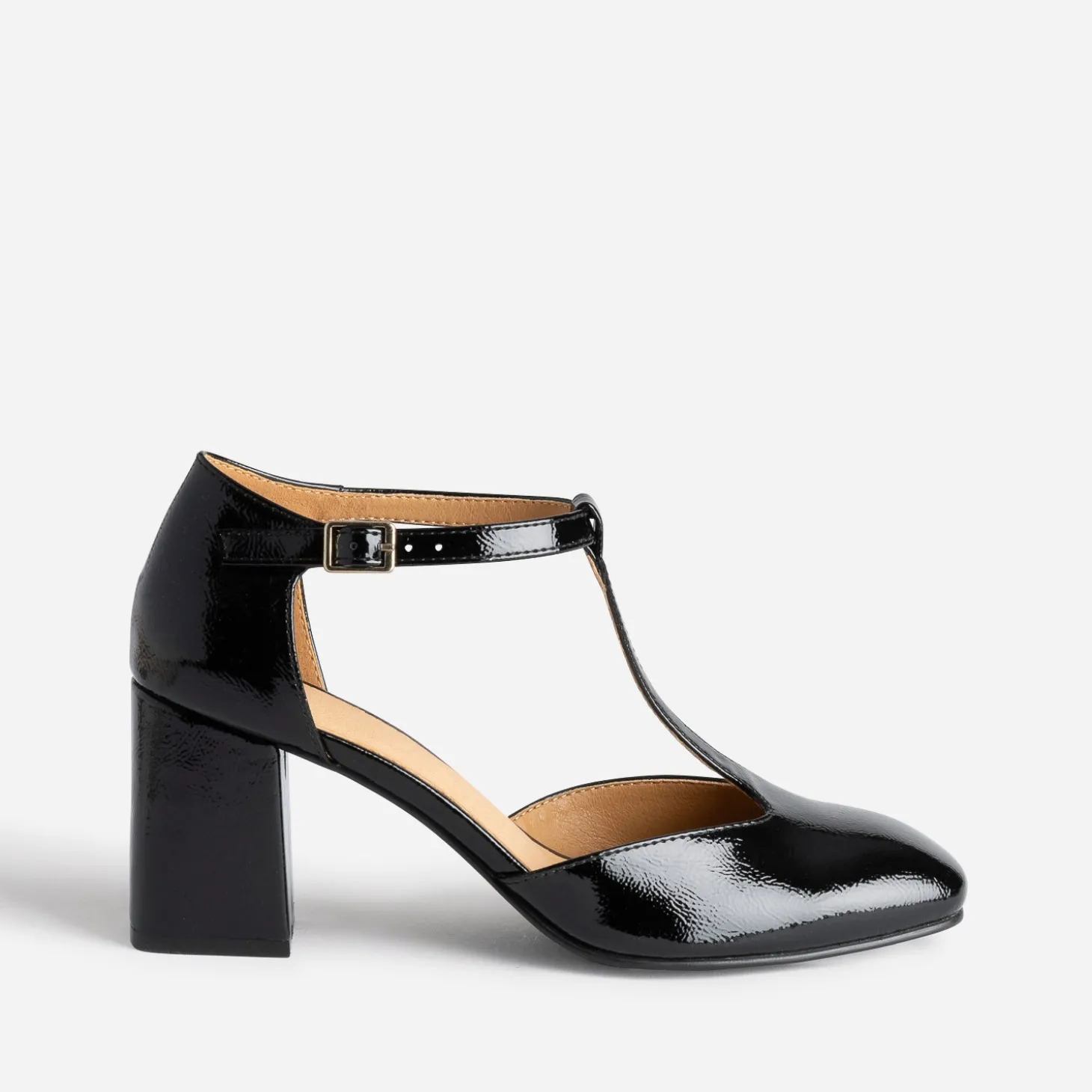 Bout et talon carrés, coloris noir et finition vernie : impossible de résister devant ce babies forme salomé. Identifiable à sa bride en T, il sublime le pied et offre, aux tenues féminines, un twist rétro chic. Blouse lavallière écrue et jupe crayon gris anthracite pour aller au bureau, pull à encolure V et pantalon flare en total look monochrome noir pour sortir entre amies, son atout, c’est indiscutablement, sa grande adaptabilité et sa semelle première moussée.