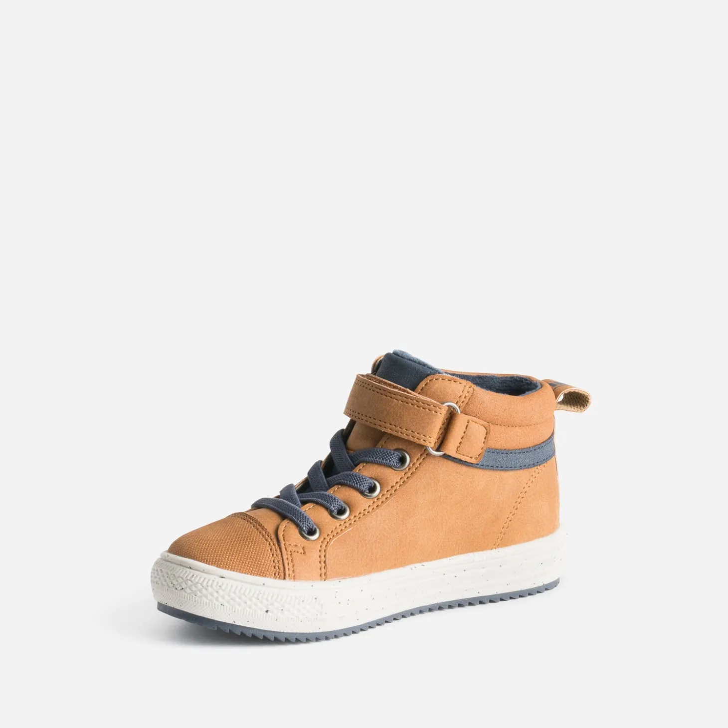 Le rêve d’un enfant, c’est une basket stylée, confortable, qui s’enfile facilement. En matière synthétique, elle se décline en coloris camel, avec découpes écrues et bleu marine. Elle se ferme par un lacet élastiqué et par un scratch. Zoom sur la semelle tachetée et crantée, pour une meilleure adhérence. Sweat, jeans, c’est l’allié de toutes ses tenues du quotidien.