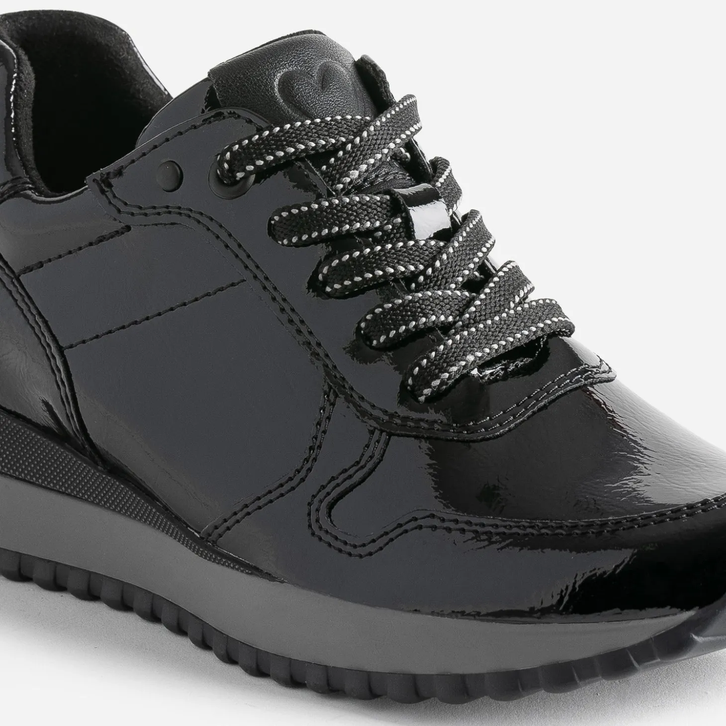 Modernité et style ne sont pas incompatibles. La preuve avec cette tennis femme. En matière synthétique noire, elle est twistée d’une finition vernie, au chic évident. Légèrement compensée, elle est parfaite pour l’entrée de saison.
