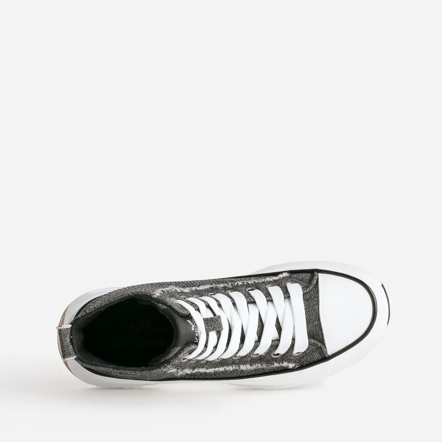 Entrez dans la saison hivernale avec cette basket montante pour femme. En textile façon denim gris anthracite, elle affirme son style mode par des strass noirs sur les côtés et des bords frangés sur les pattes de laçage et le galon. Montée sur une semelle à plateforme, elle permet de prendre de la hauteur sans effort. Un modèle à porter avec une tenue à l’esprit décontracté : crop top, pantalon large et casquette.