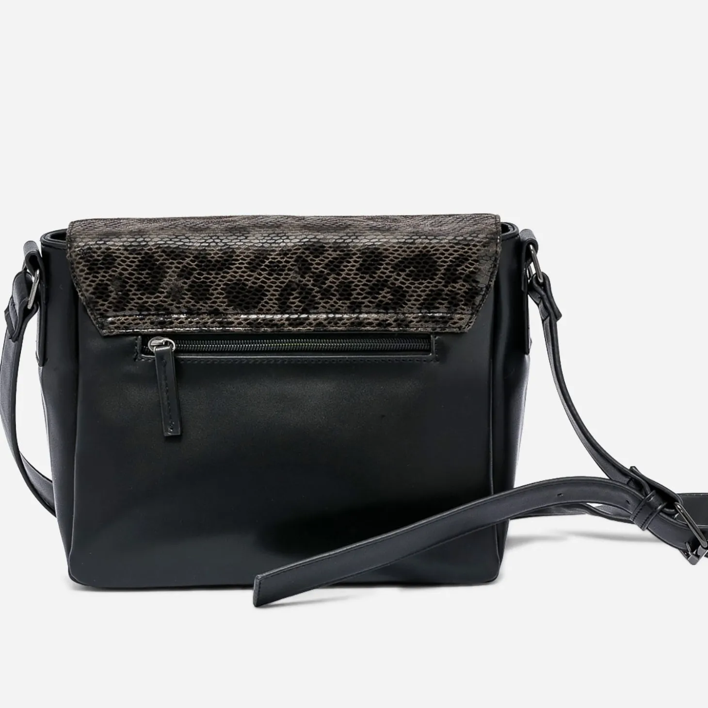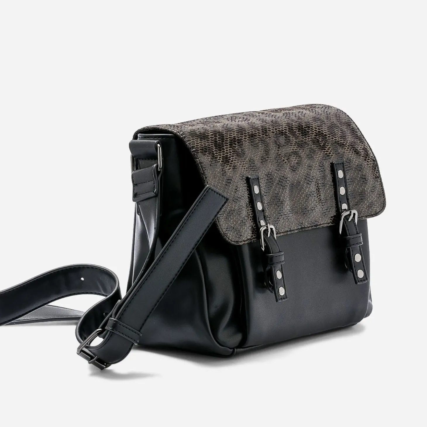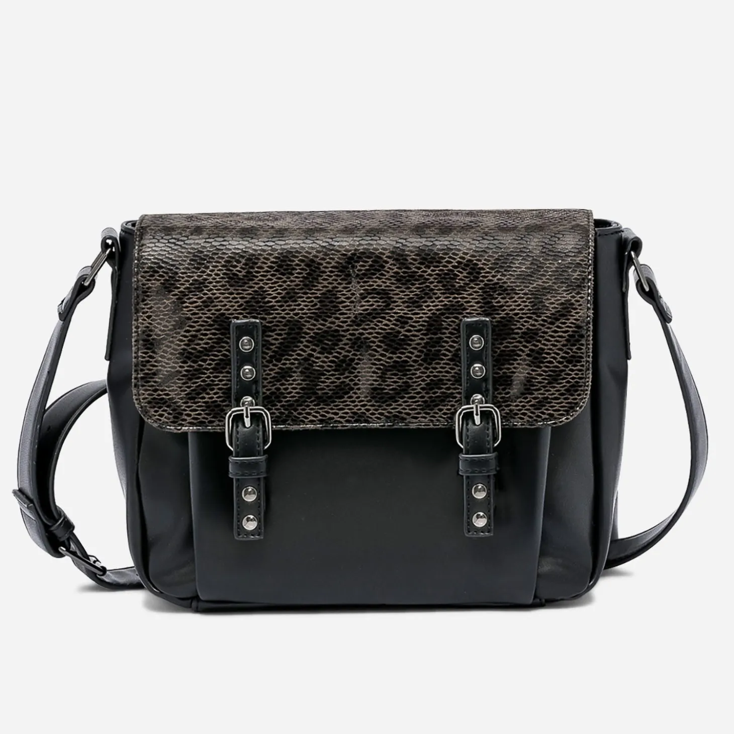 Besace TEXTO noire avec rabat effet léopard
