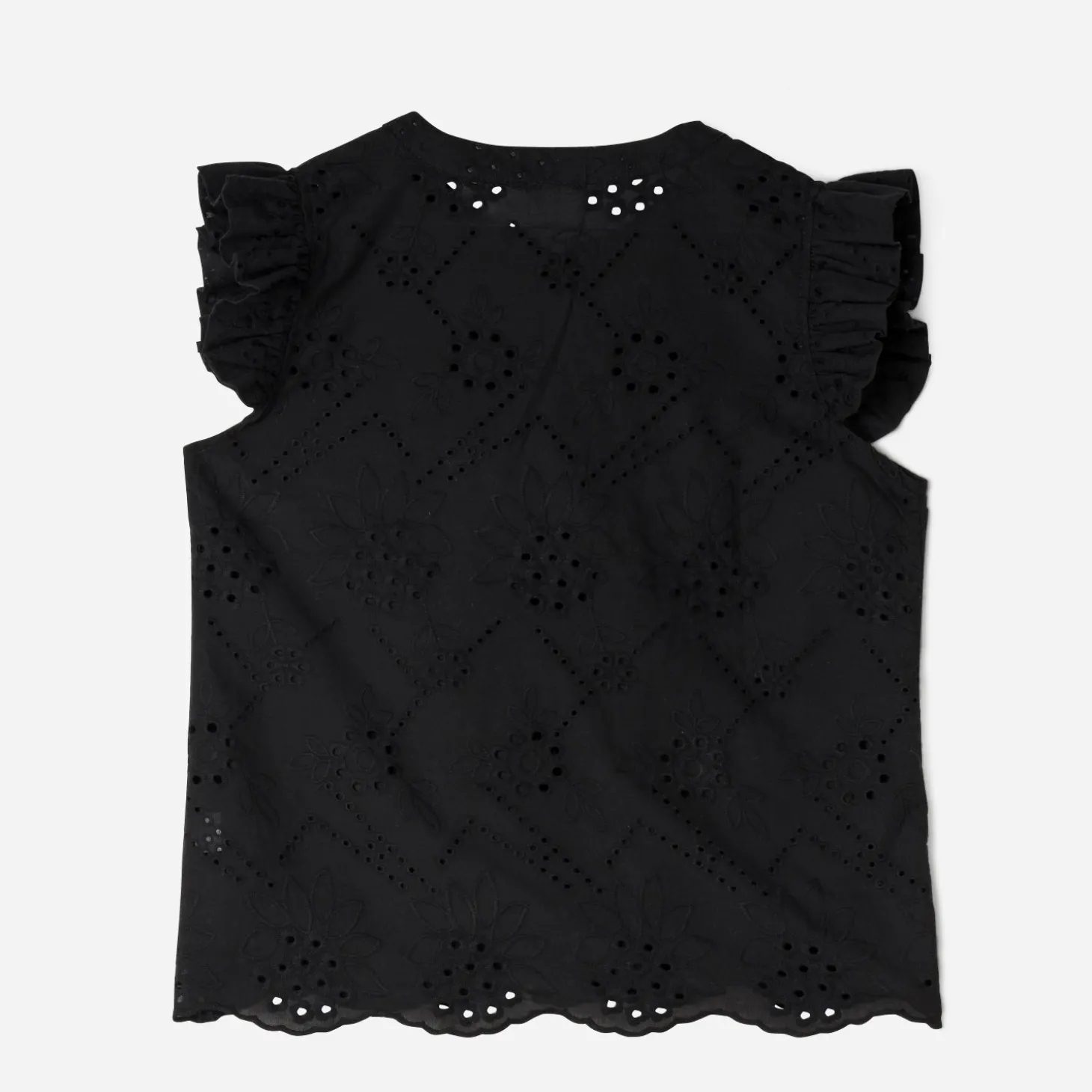 La blouse et la broderie anglaise : la rencontre de deux tendances incontournables. Résultat ? Un style délicat et raffiné, un charme intemporel, une touche de romantisme à toutes les tenues. Un modèle à choisir en coloris noir, sur un pantalon de costume noir et une ceinture en cuir à boucle métal doré et des mules plates.