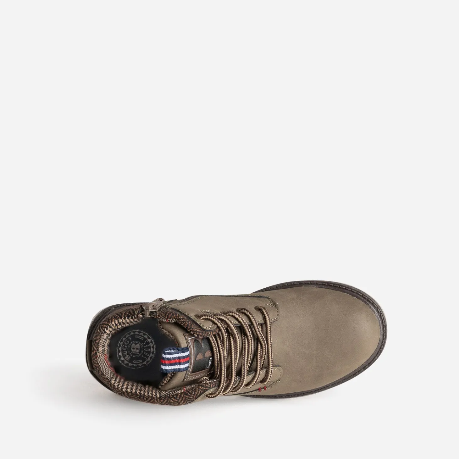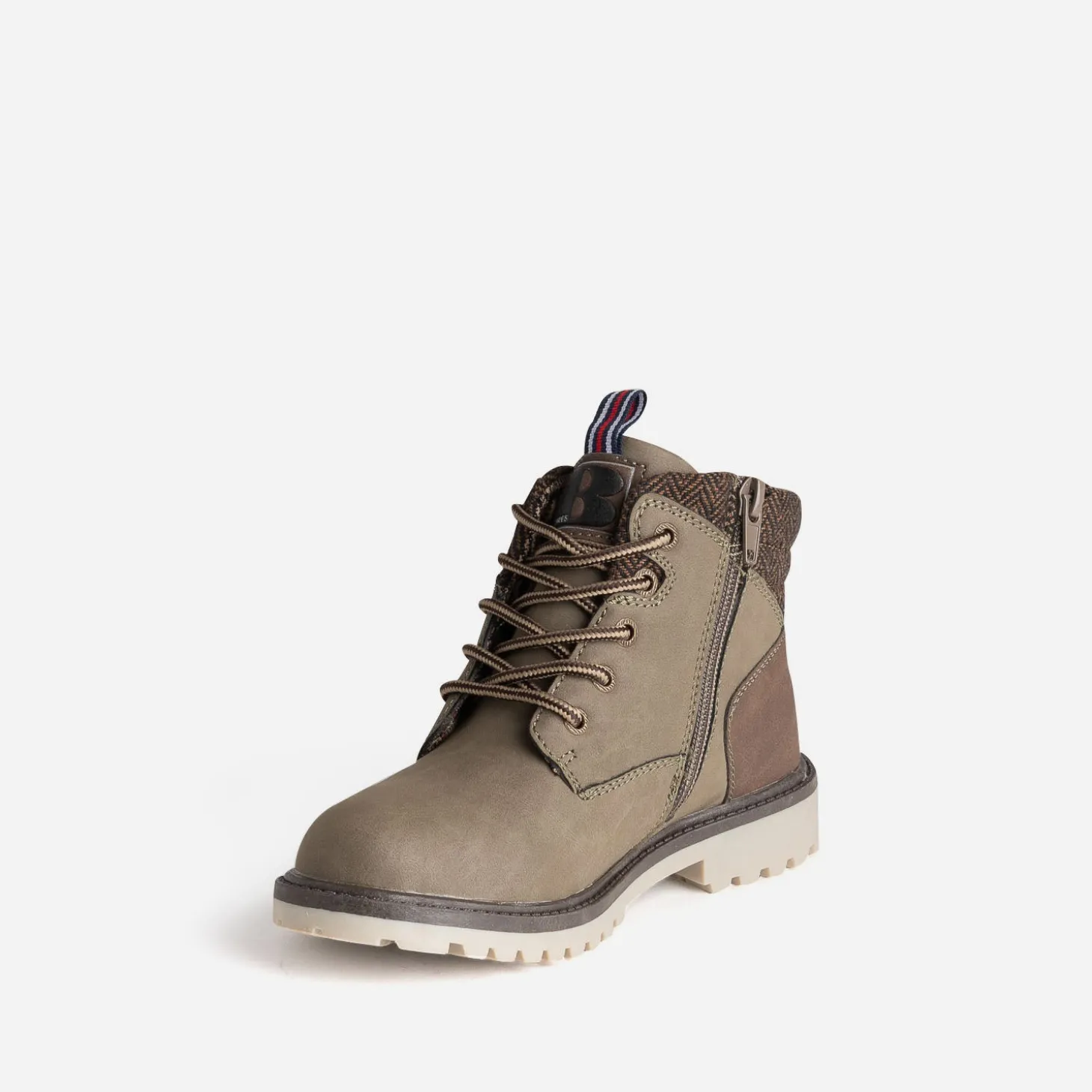 Conçu pour les journées froides, cette boots à lacet est idéale pour garder les pieds de votre enfant bien au chaud pendant les mois d’hiver. Fabriqué en matière synthétique suédée kaki, il offre un aspect doux et élégant. L’intérieur présente une doublure en textile à motif carreaux et le haut de la tige, un matelassage à motif chevrons. Le lacet façon cordon et le zip intérieur permettent un enfilage et un retrait faciles, pour plus d’autonomie. Un modèle à associer à un jean et une surchemise à carreaux pour un style tendance et décontracté d’inspiration workwear.