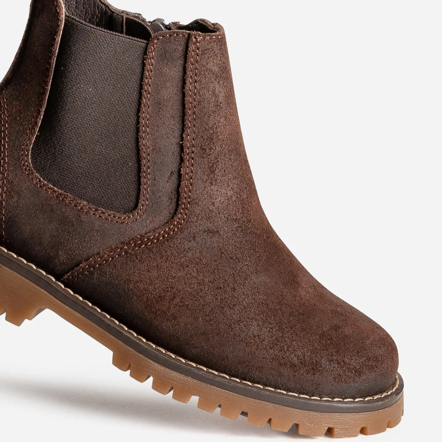 Le Chelsea boots est toujours une valeur sûre. Revisité en cuir velours, il se décline marron foncé, couleur phare de la saison, et ose la semelle crantée. Un modèle étudié, pour finaliser les looks de votre garçon, au quotidien.