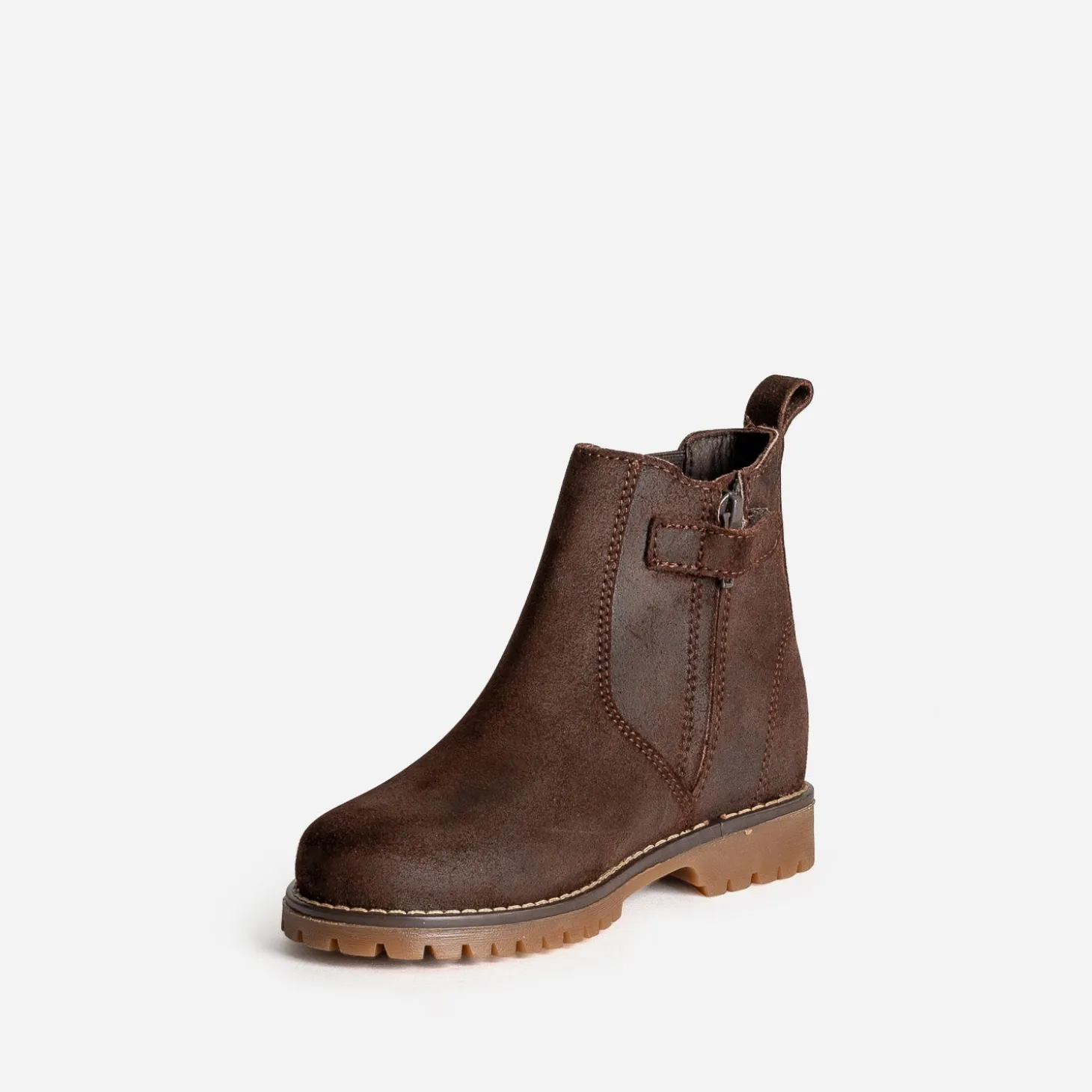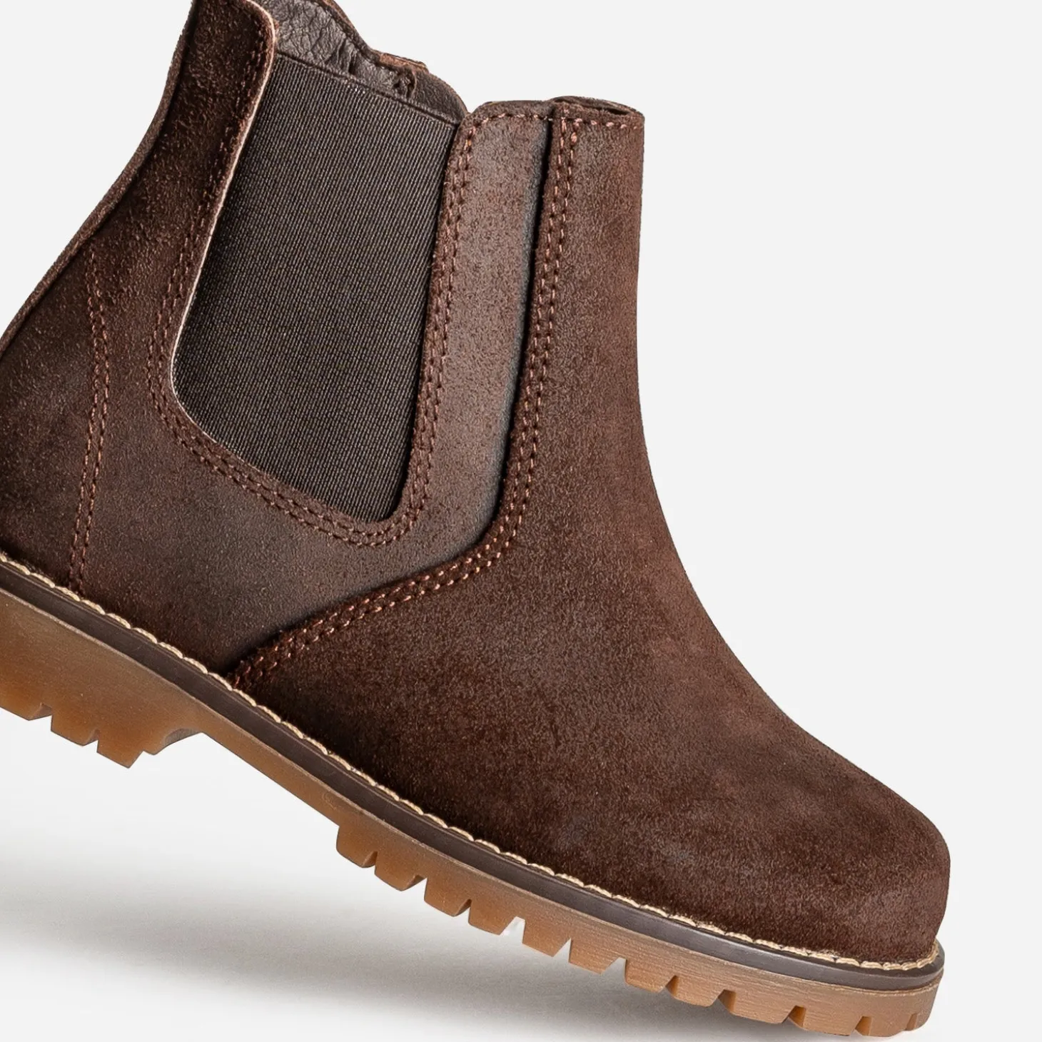 Le Chelsea boots est toujours une valeur sûre. Revisité en cuir velours, il se décline marron foncé, couleur phare de la saison, et ose la semelle crantée. Un modèle étudié, pour finaliser les looks de votre garçon, au quotidien.