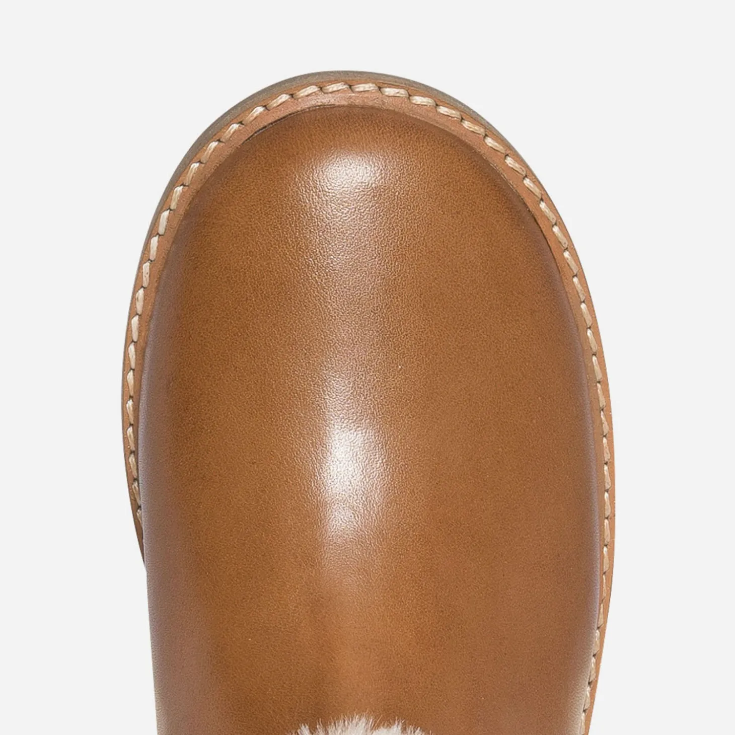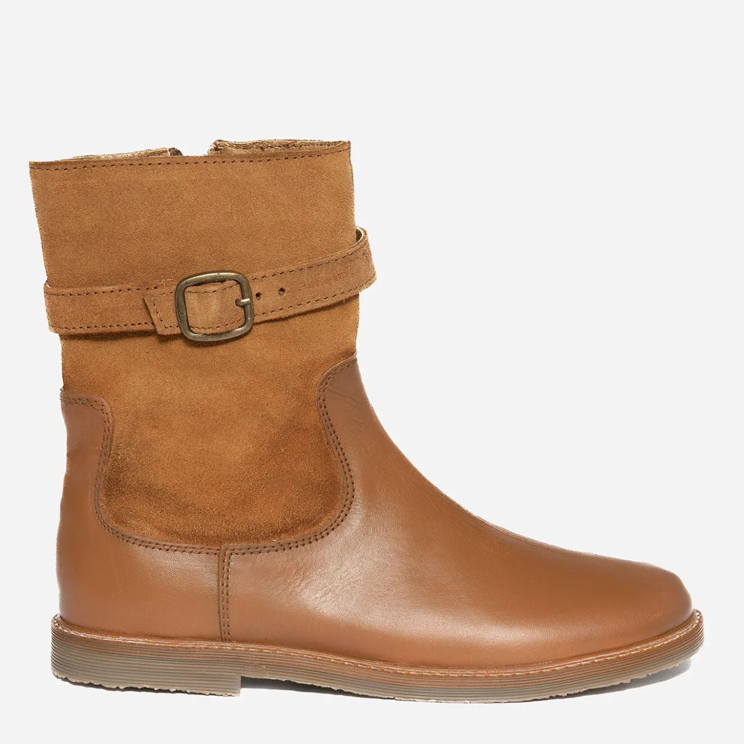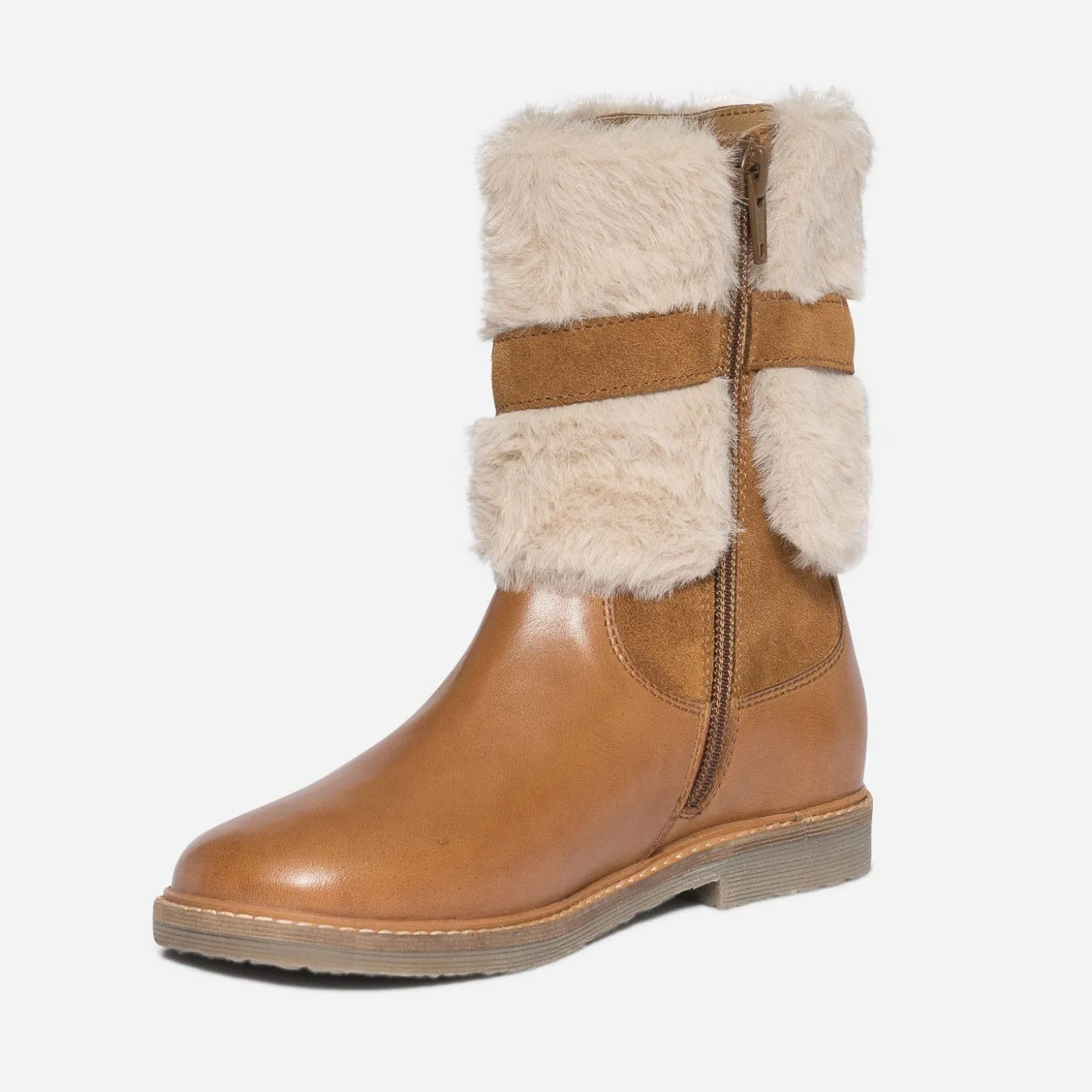 Mix de cuir lisse et de cuir velours, le boots fille camel défend un style élégant et classique. Son atout ? Un empiècement tout doux, en matière synthétique beige, amovible par pressions, à installer à l’approche du plein hiver. Idéal avec les robes, jupes et pantalons, un modèle à porter sans modération.