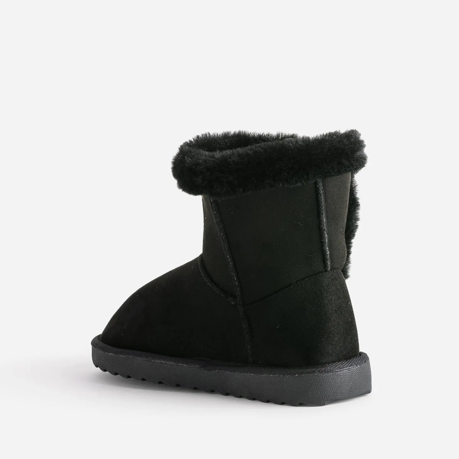 Avis aux frileuses ! Le boots fourré est toujours un must-have de l’hiver, avec doublure en fourrure synthétique et semelle crantée. Un modèle décliné en coloris noir, qui matche aussi bien avec une robe en laine, ultra tendance, qu’avec un gros pull et un jean skinny, en mode vacances.