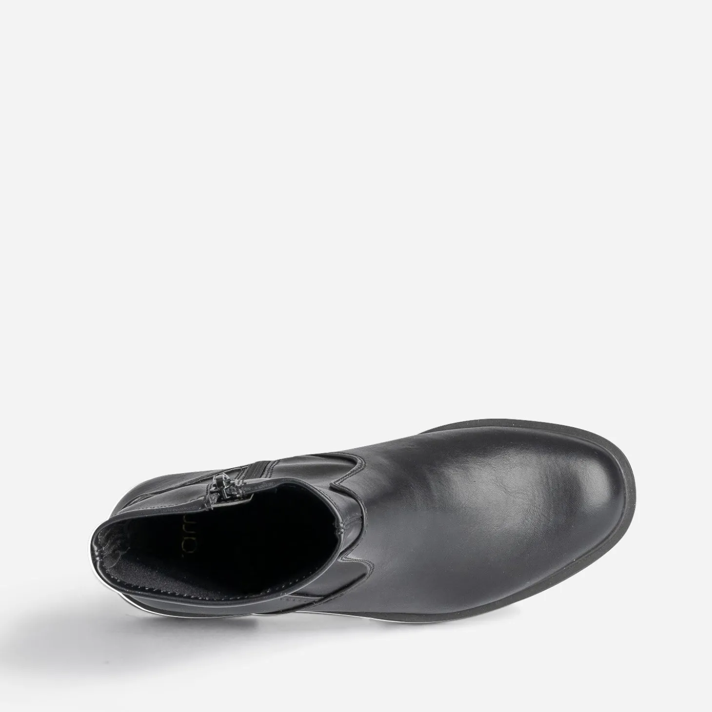 Ce boots femme prône la simplicité. La simplicité d’une ligne, rythmée de découpes placées. La simplicité d’un coloris noir, intemporel. La simplicité d’un bout ronde et talon décroché. La simplicité d’une fermeture par zip intérieur. Un modèle qui fonctionne aussi bien avec un tailleur-pantalon cropped, qu’avec une robe fluide et imprimée.