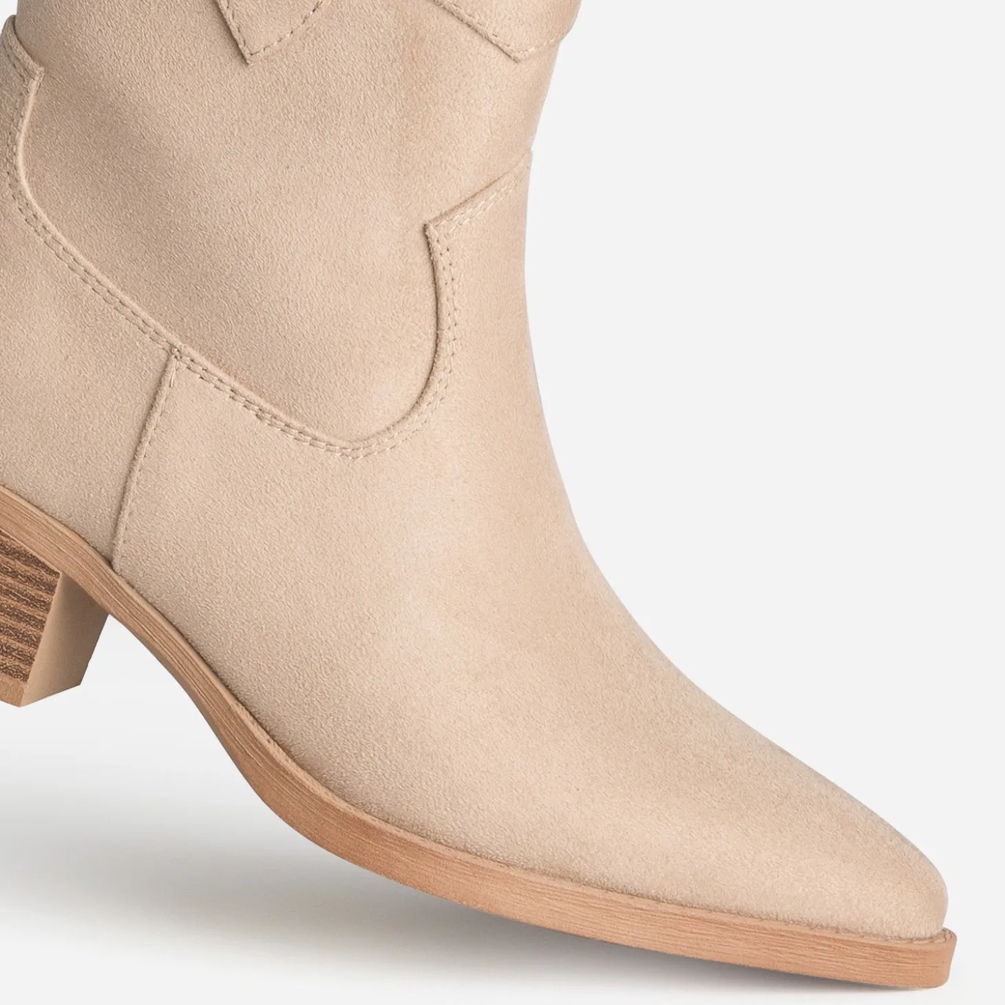Santiag lover forever, ce boots femme est fait pour vous. De couleur beige, il est confectionné en textile suédé et rythmé de découpes spécifiques. Son bout pointu allonge le pied, et le talon, ni trop plat ni trop haut, est idéal au quotidien. Un modèle à préférer avec des teintes clairs et plutôt naturelles, du crème au camel.