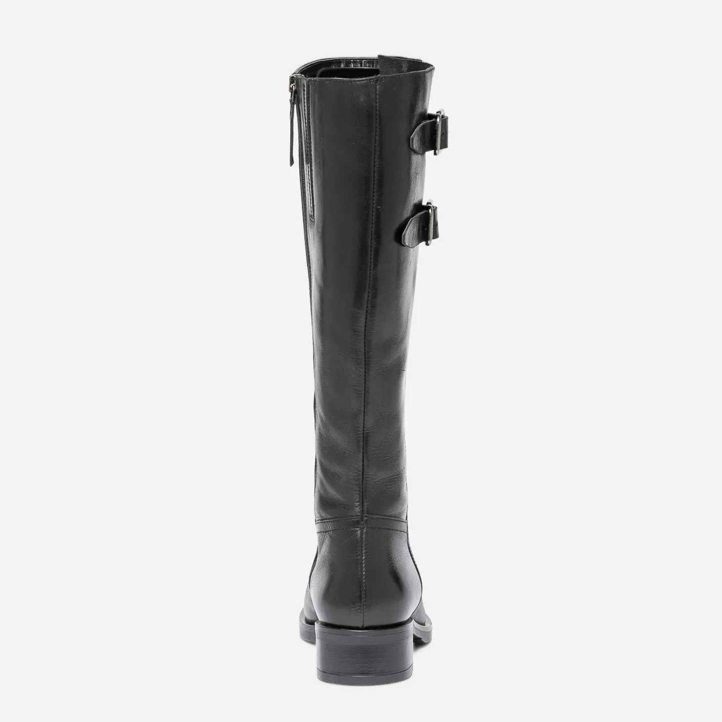 Cet hiver, le cuir est partout, et notamment en total look jusqu’aux pieds. Alors la botte est assurément votre meilleure alliée. Noire, elle présente une ligne classique, avec bout amande et talon décroché, et gagne en style et en confort, grâce aux deux pattes placées sur le haut de la tige et fermées par des boucles carrées en métal argenté : elles s’ajustent en fonction de votre tour de mollet. Jouez l’esprit militaire, avec des tons kaki ou gris.