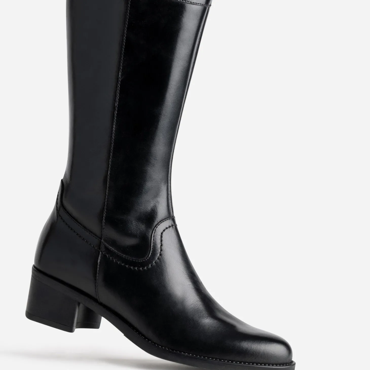 Inspirée des bottes des cavaliers, cette nouvelle proposition a tout pour vous plaire. En cuir noir, cette botte pour femme reprend les codes habituels, notamment la couture placée sur le haut de la tige. Elle est montée sur un talon légèrement haut, sans perdre en confort ni en stabilité. Un modèle au style minimaliste et intemporel, que vous aurez plaisir à porter, saison après saison.