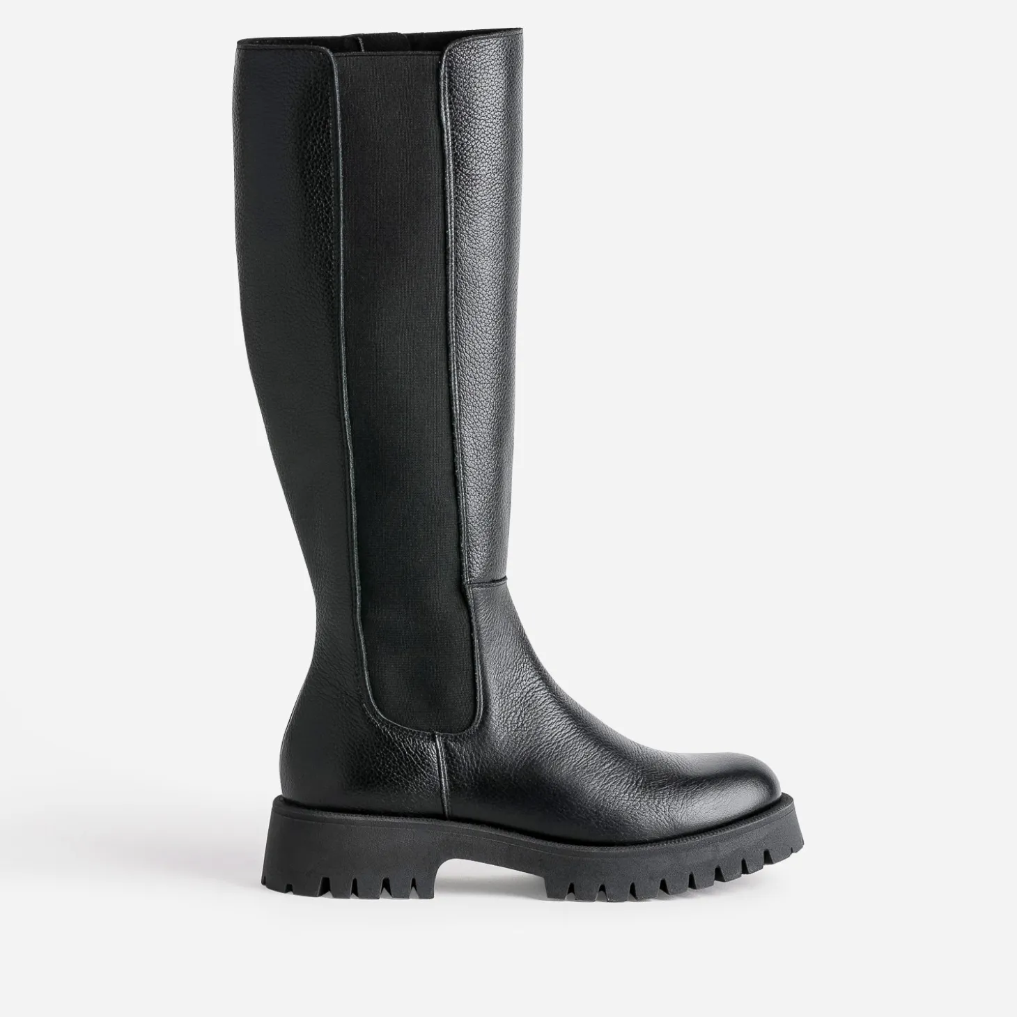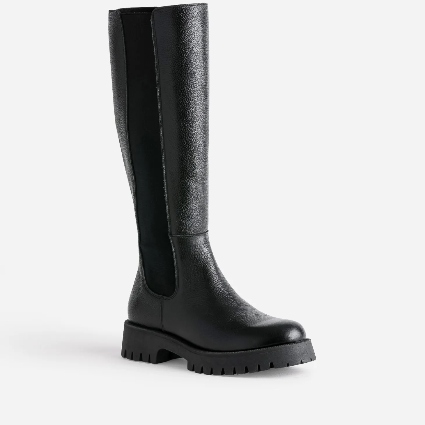 Semelle épaisse et crantée, cuir noir, cette botte est un modèle iconique de la saison. Elle séduit notamment par son élastique latéral, doublé d’un zip intérieur, qui facilitent l’entrée et la sortie du pied, sans compromettre son confort. Privilégiez-la avec une robe ou une jupe au niveau du genou, dans un style plutôt rock et moderne.