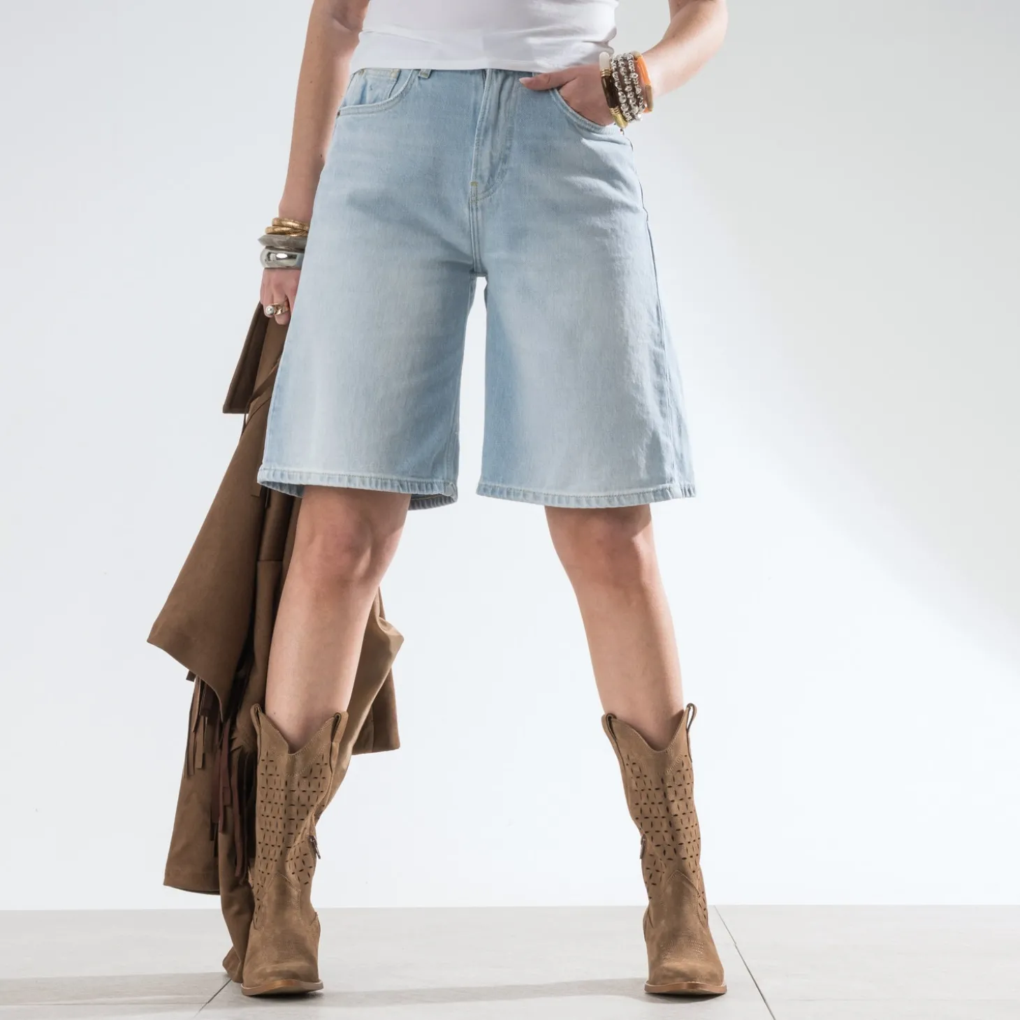 La santiag se réinvente avec cette mi-botte pour femme. Bout pointu, talon biseauté et surpiqûres spécifiques rappellent l’esthétique western, pile dans la tendance actuelle. Elle est confectionnée en cuir velours, dans un coloris taupe, et se démarque par une tige perforée. Un modèle à privilégier, dès la mi-saison, avec un total look blanc, composé d’un tee-shirt et d’une mini jupe volantée, ou avec un total look denim, en chemise sur short bleus, pour des looks esprit ‘into the wild’.