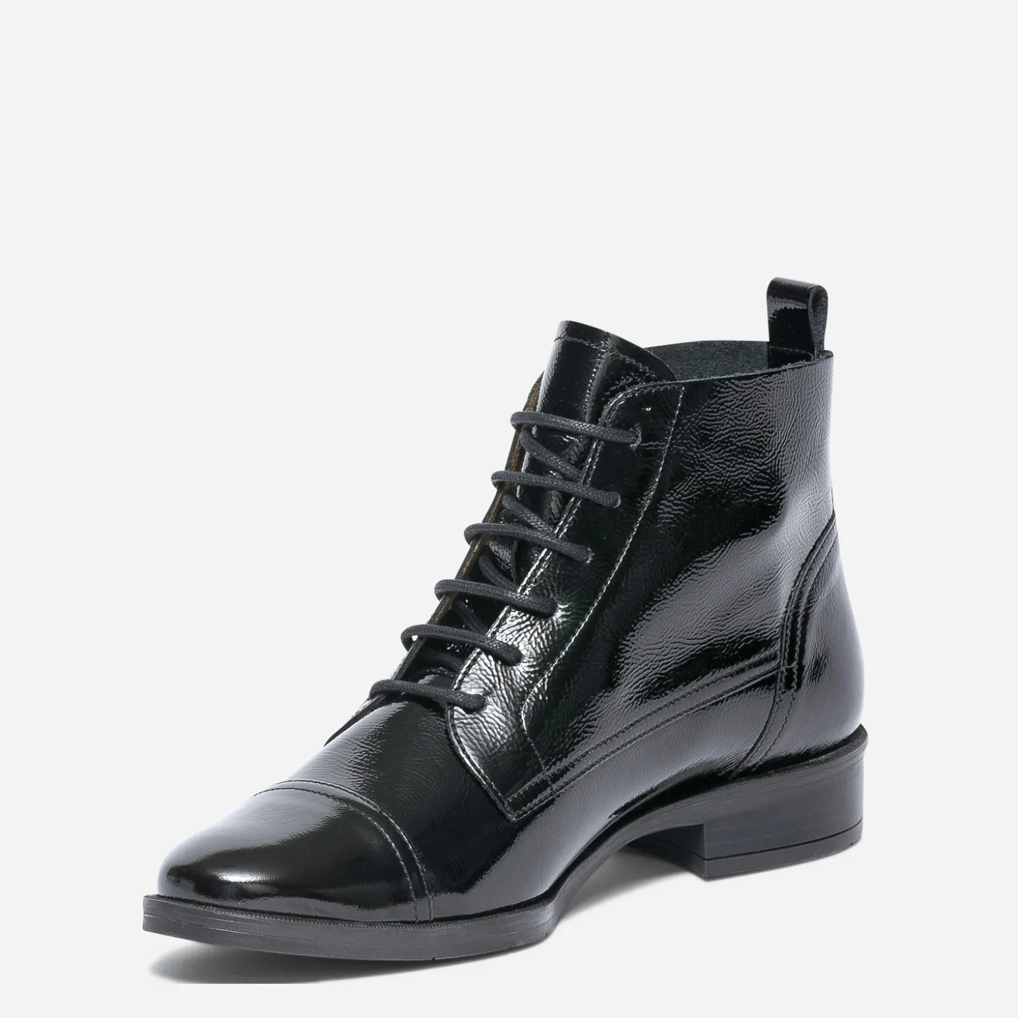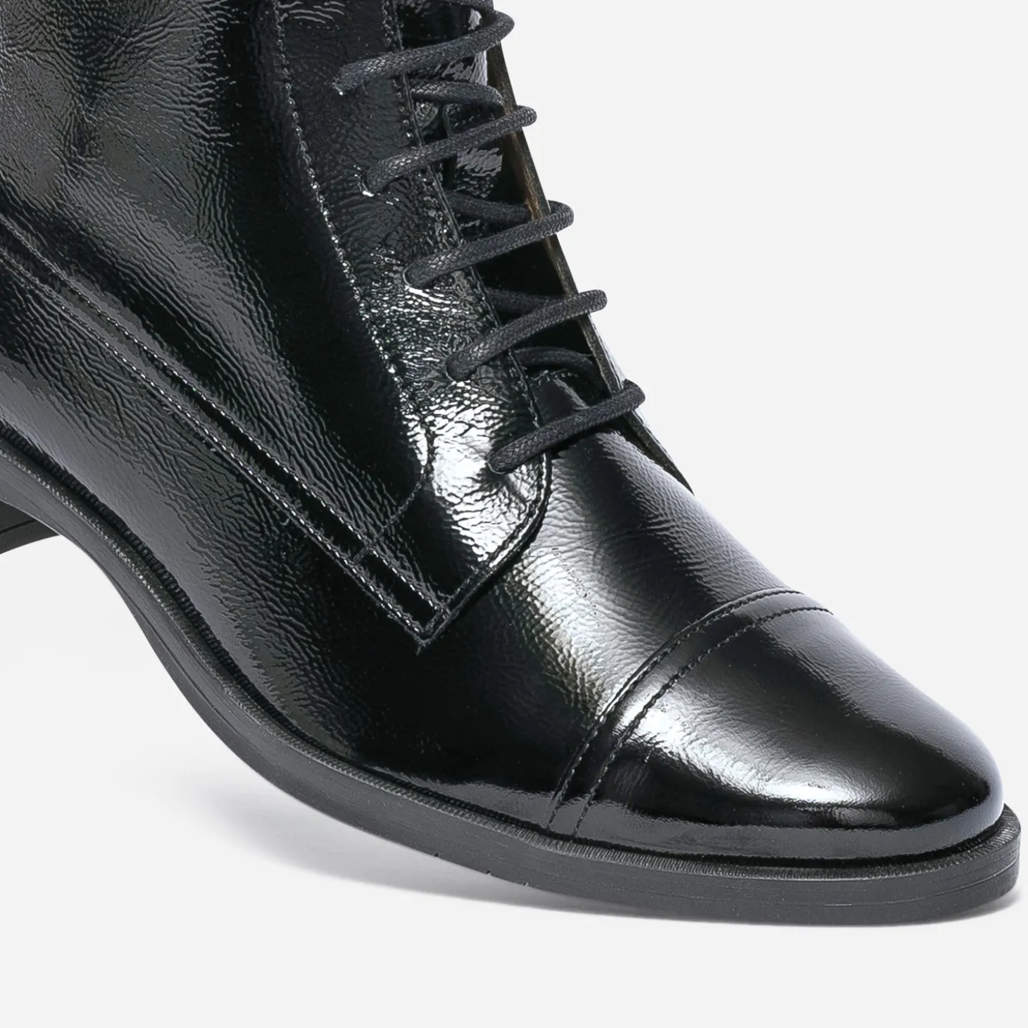 Portée par la tendance bc-bg de la saison, la bottine à lacet fait un retour remarquable et remarqué. En cuir noir verni, elle présente un talon de 3 cm, ultra confortable au quotidien. Sa tige est rythmée d’un bout Molière, de 12 œillets et d’un lacet rond et enduit spécifiques au modèle. A l’intérieur, doublure et première en cuir garantissent un confort optimal, renforcé par une semelle amovible reconnue pour ses propriétés d’amorti, de respirabilité et de durabilité. Chic en toutes circonstances, cette bottine femme est votre alliée, en semaine comme en week-end, en journée comme en soirée.