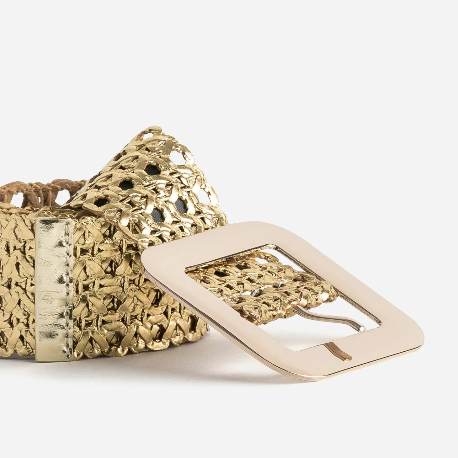 Sur une veste saharienne, sur une combinaison-pantalon ou une robe-chemise en lin beige, la ceinture tressée donne le ton ; le ton d’un style bohème chic, accentué par son coloris doré et sa maxi boucle carrée en métal doré. Un modèle pensé pour s’adapter à toutes les morphologies.