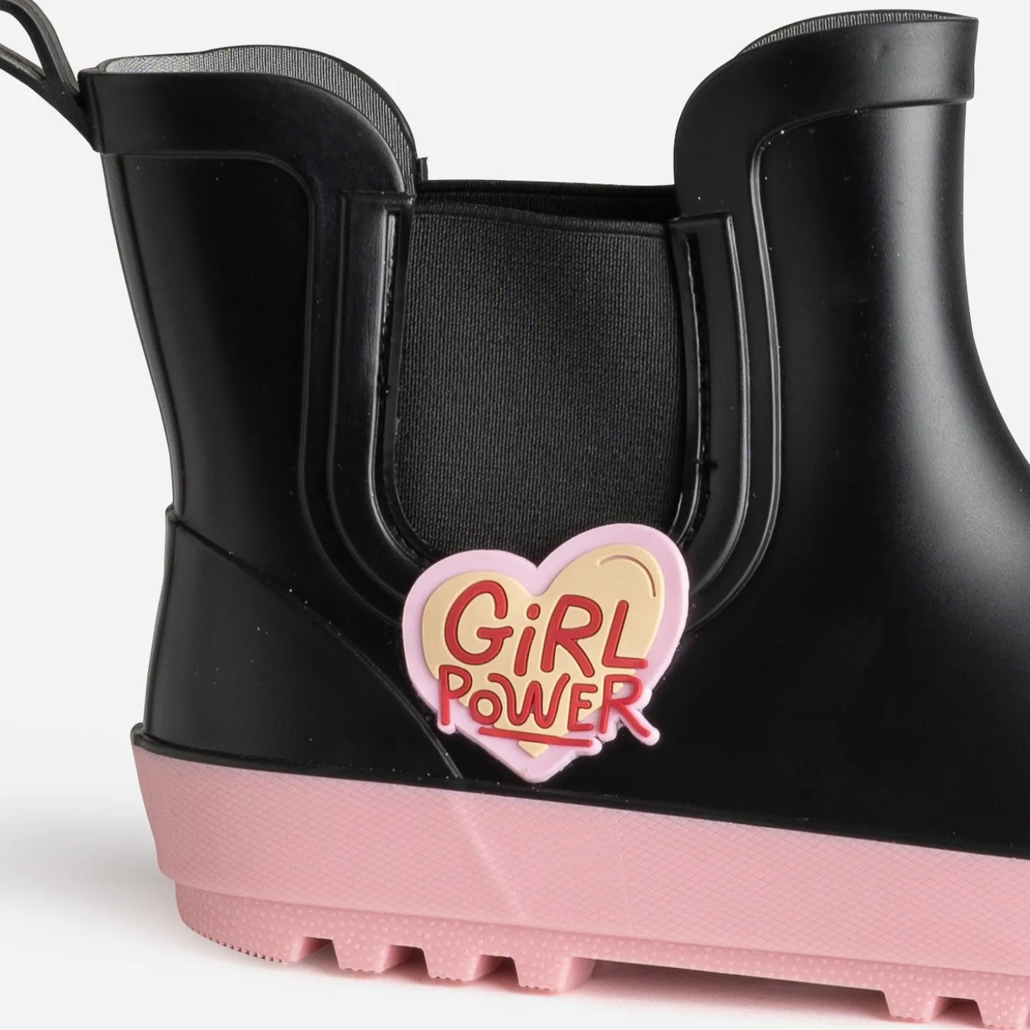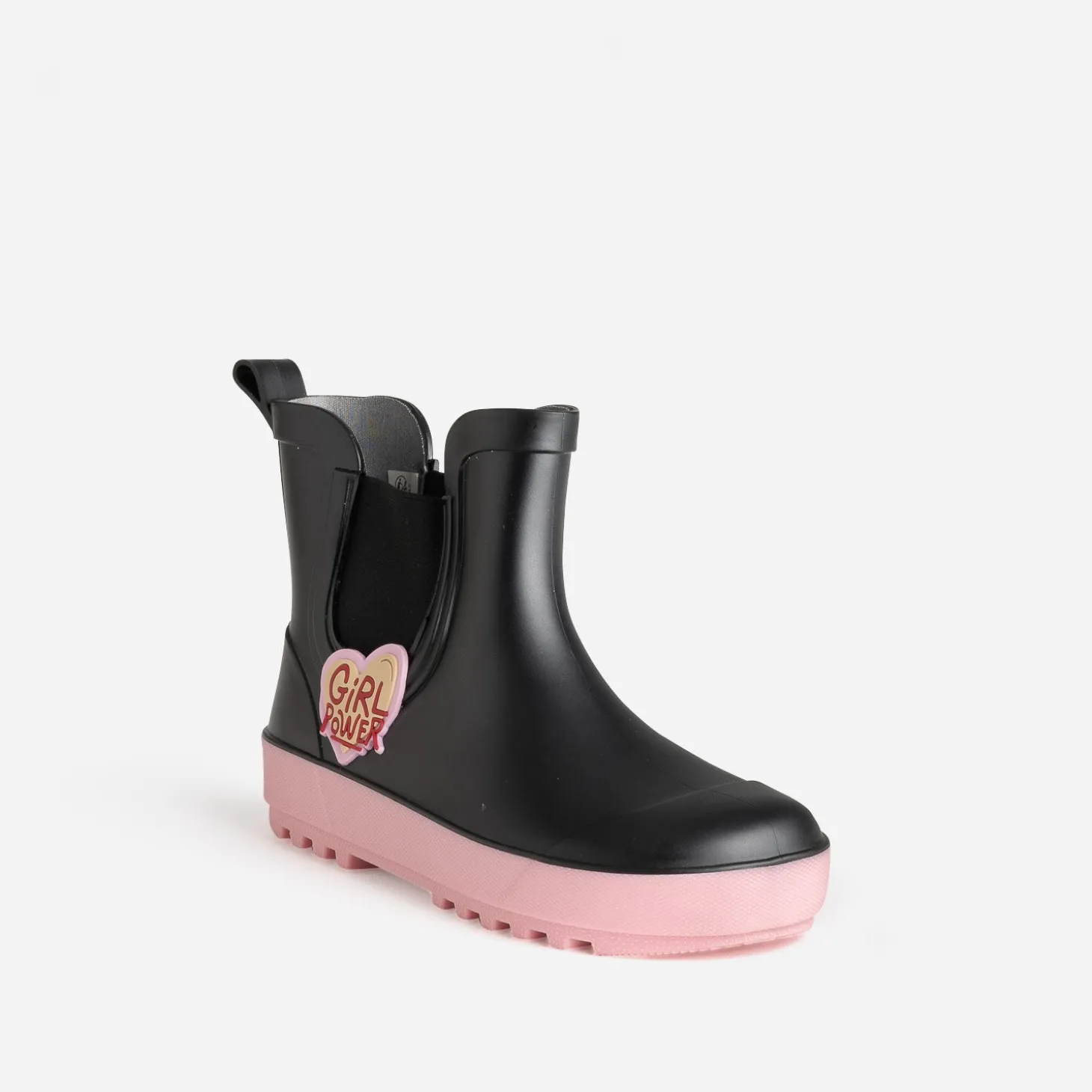 Ce Chelsea boots pour enfant est imaginé pour mettre de la gaieté dans la vie même par temps gris ! En PVC mat, imperméable et étanche, il se décline en coloris noir et s’anime d’un patch cœur et du message Girl Power en relief sur le côté. Un modèle indispensable toute l’année.