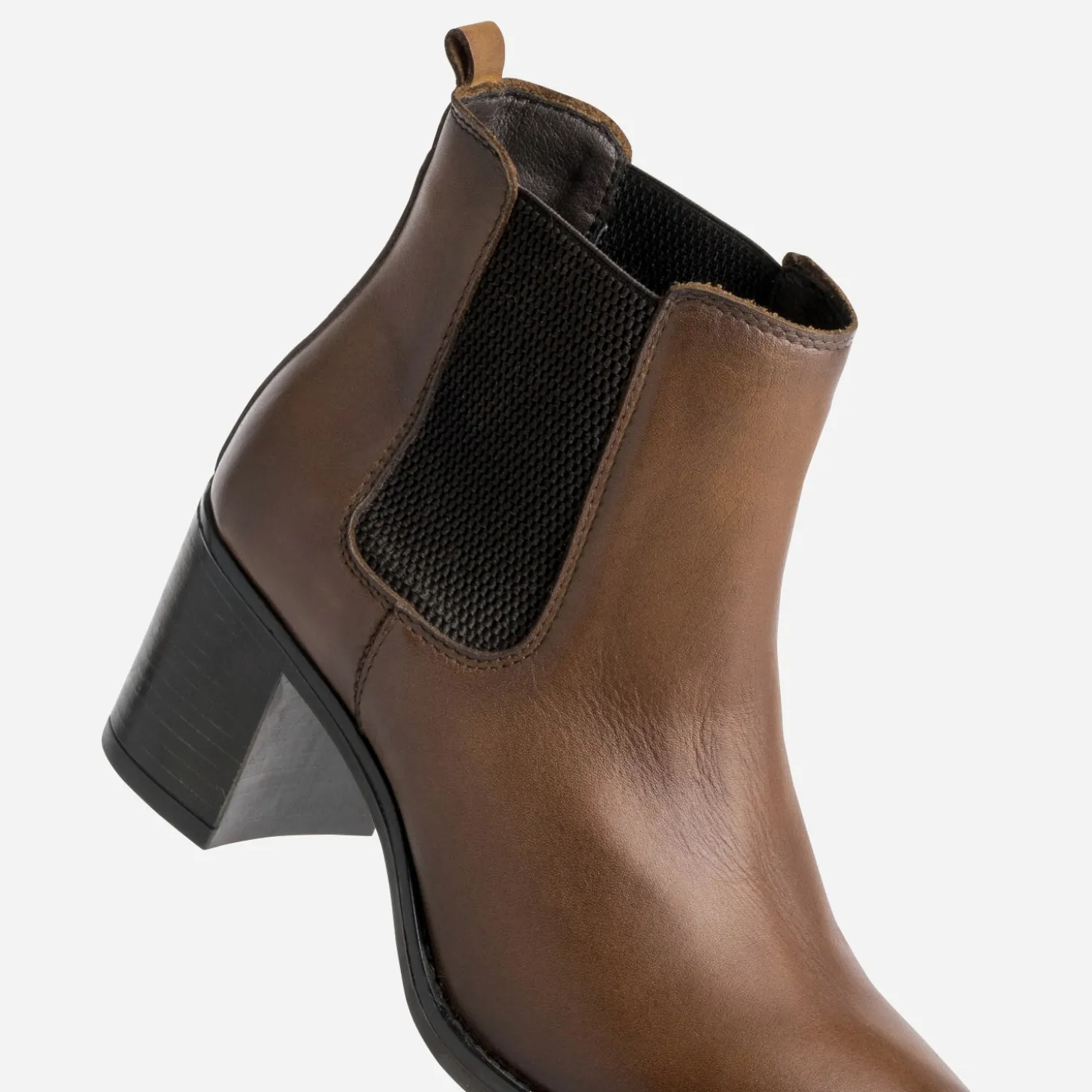 Le Chelsea boots à talon a ce pouvoir de mettre tout le monde (et tous les styles) d’accord. Emprunté au vestiaire masculin, il se féminise par un talon carré de 6,5 cm, d’une parfaite stabilité. En cuir cognac, il s’autorise des élastiquées latéraux fantaisie, avec effet damier. Un modèle dont vous ne pourrez plus vous passer, avec un costume comme avec un jean ou une robe.