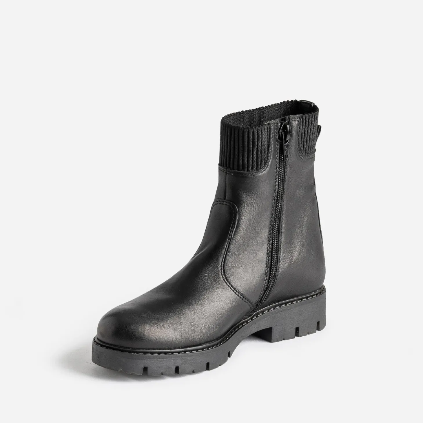 Rock attitude recommandée avec ce Chelsea boots pour fille. Noir, il se démarque par une tige en cuir lisse, prolongée par des élastiques en textile côtelé, et une semelle crantée. Robe plissée ou blouson esprit motard sur jean slim, misez sur un total look dark.