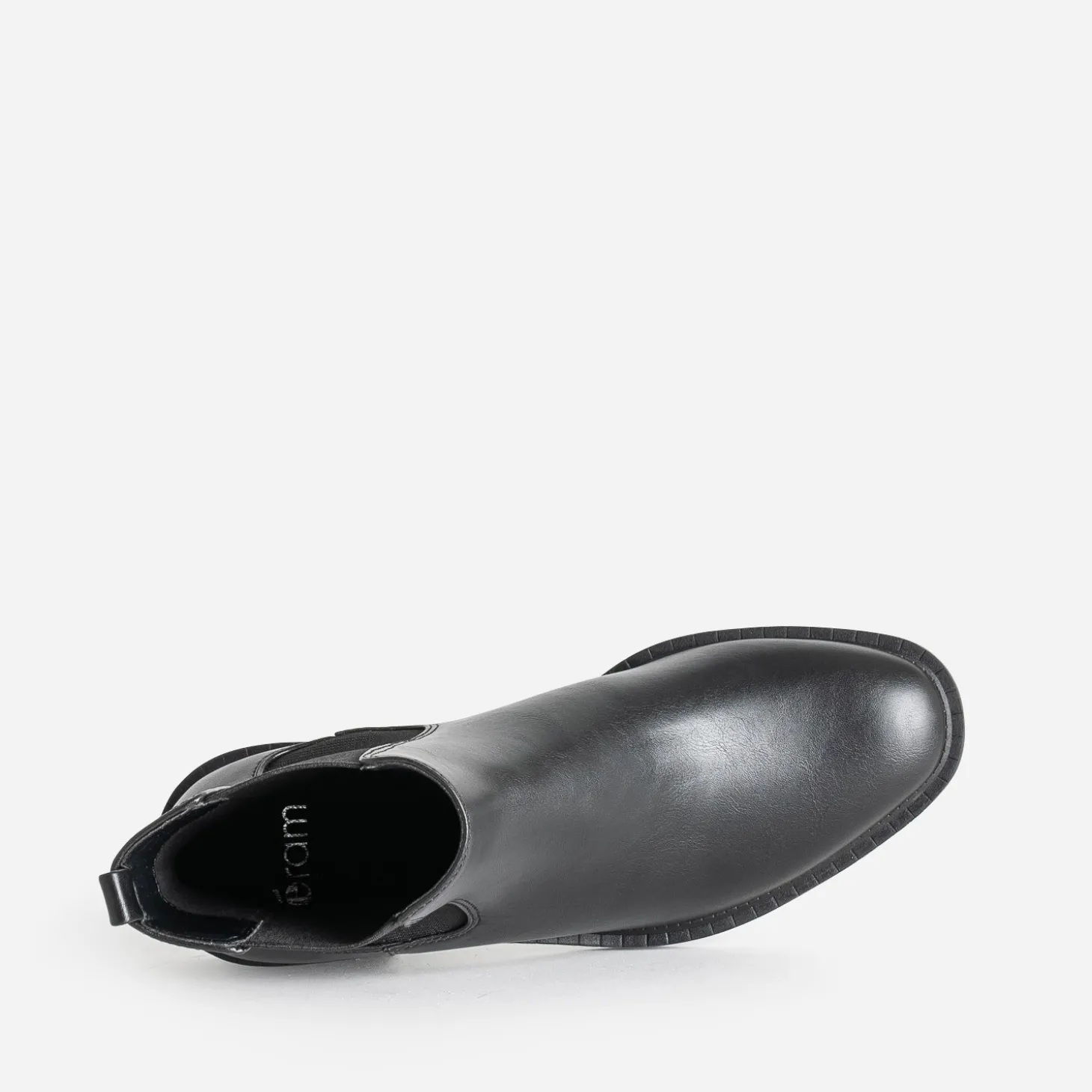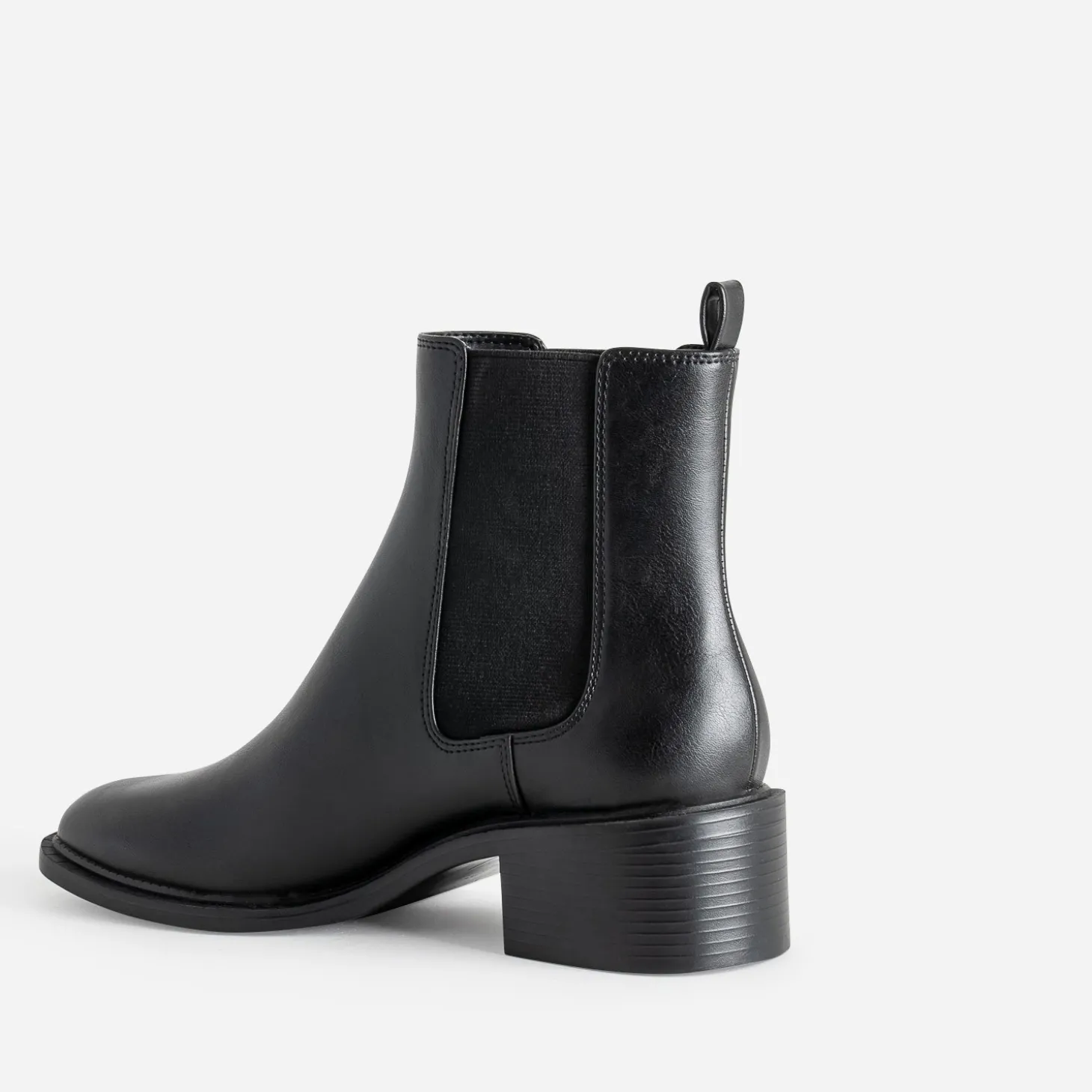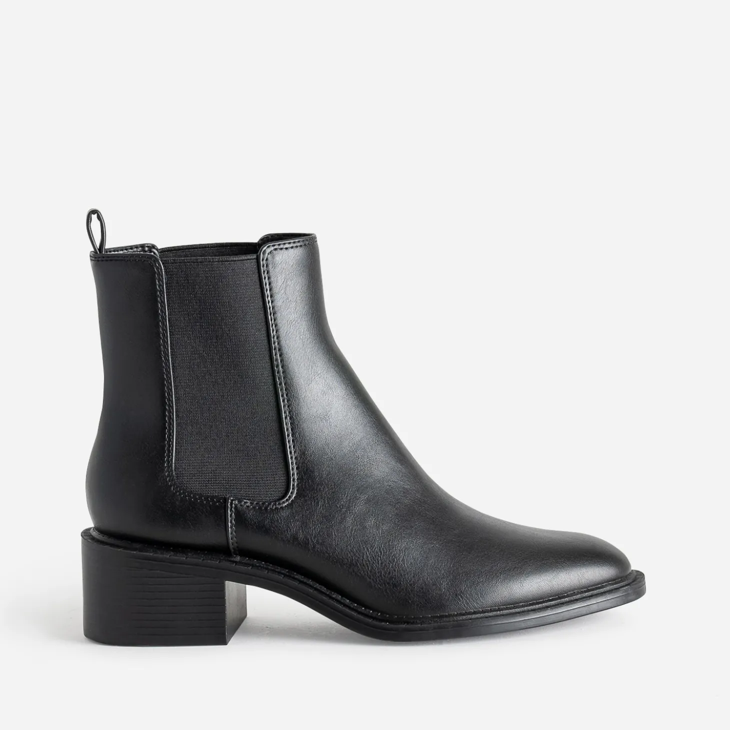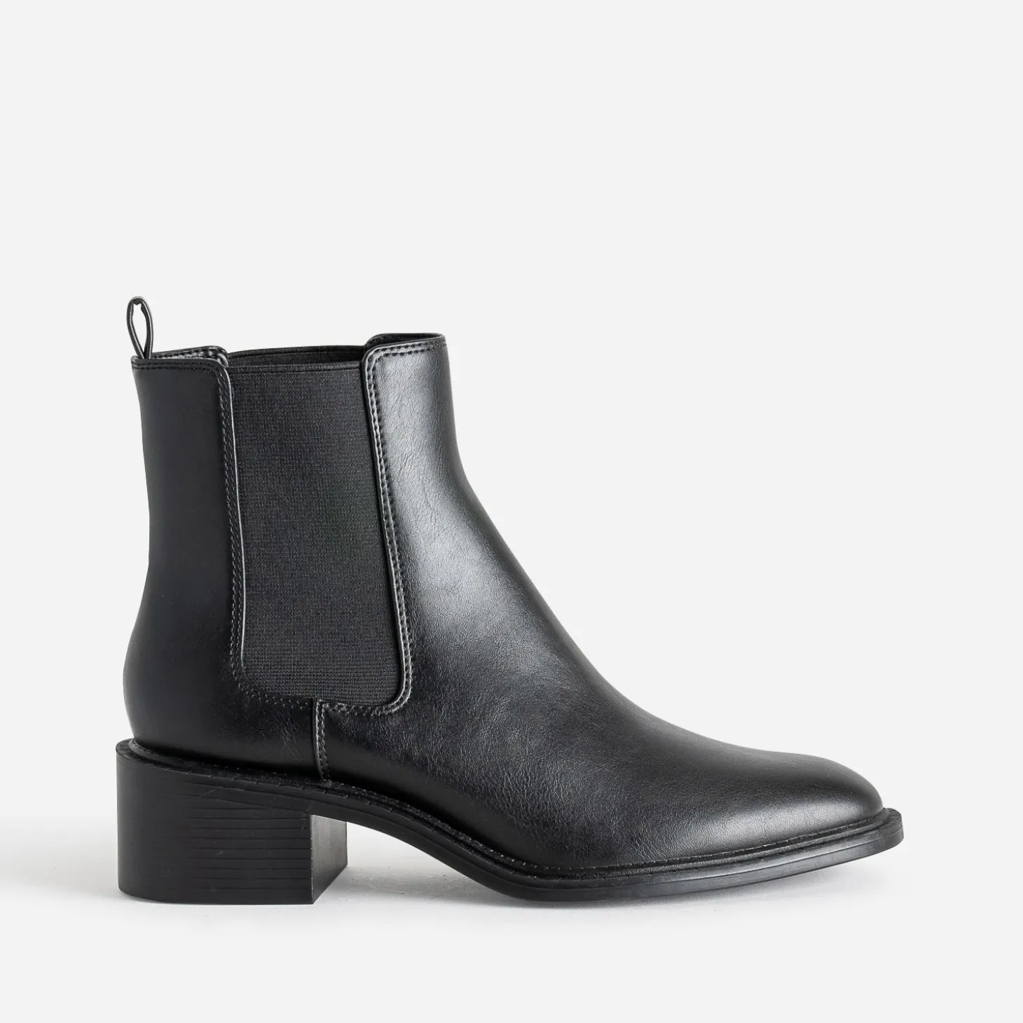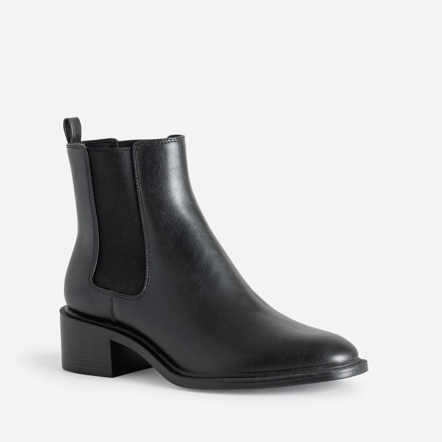 4,5 cm : c’est la hauteur idéale de ce Chelsea boots pour femme. En matière synthétique noire, il s’autorise une finition mate, un bout légèrement carré et une trépointe rainurée, plus modernes. Un modèle facile à porter au quotidien, avec un look city, intemporel comme plus osé.