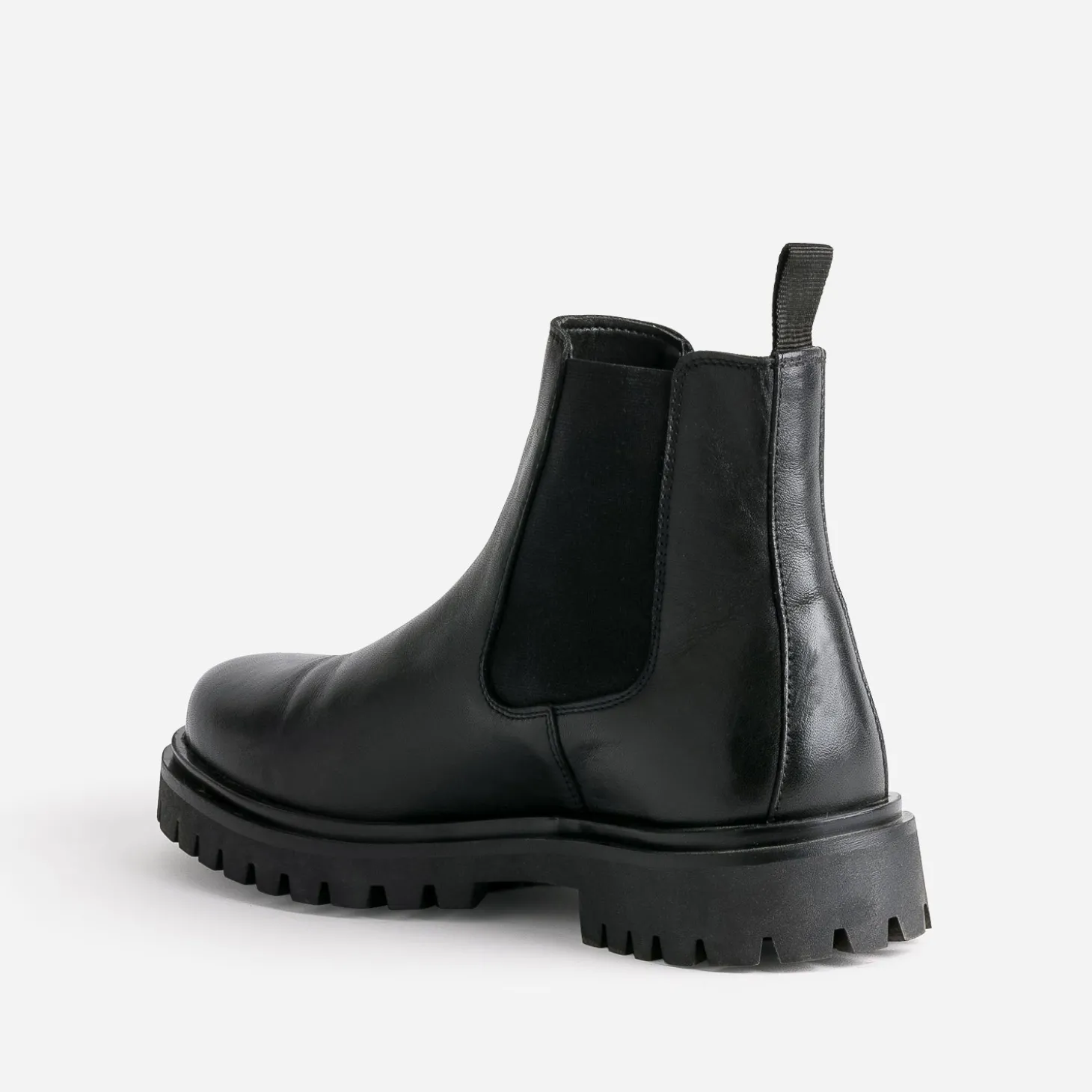 La tendance de la semelle épaisse et crantée s’invite dans le Chelsea boots pour homme. En cuir noir, il prône le monochrome, de la tige à la semelle, en passant par les élastiques latéraux, pour gagner en style. Adoptez son esprit rock, avec une chemise à carreaux et un jean slim.