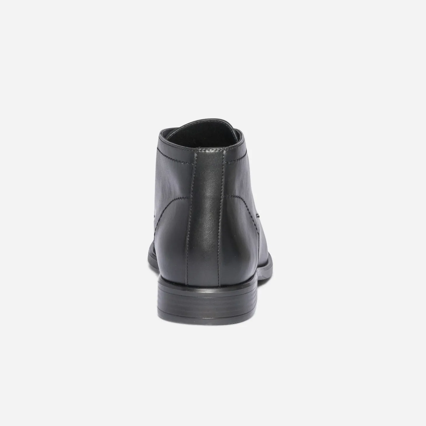 Le Chukka boots est un nouveau modèle masculin, qui mérite d’être essayé. Il est confectionné en cuir noir et se démarque par une tige plus souple. Doublure en cuir, première en cuir, il promet un confort absolu. Un modèle parfait, avec un look formel, comme le costume noir et la chemise blanche.