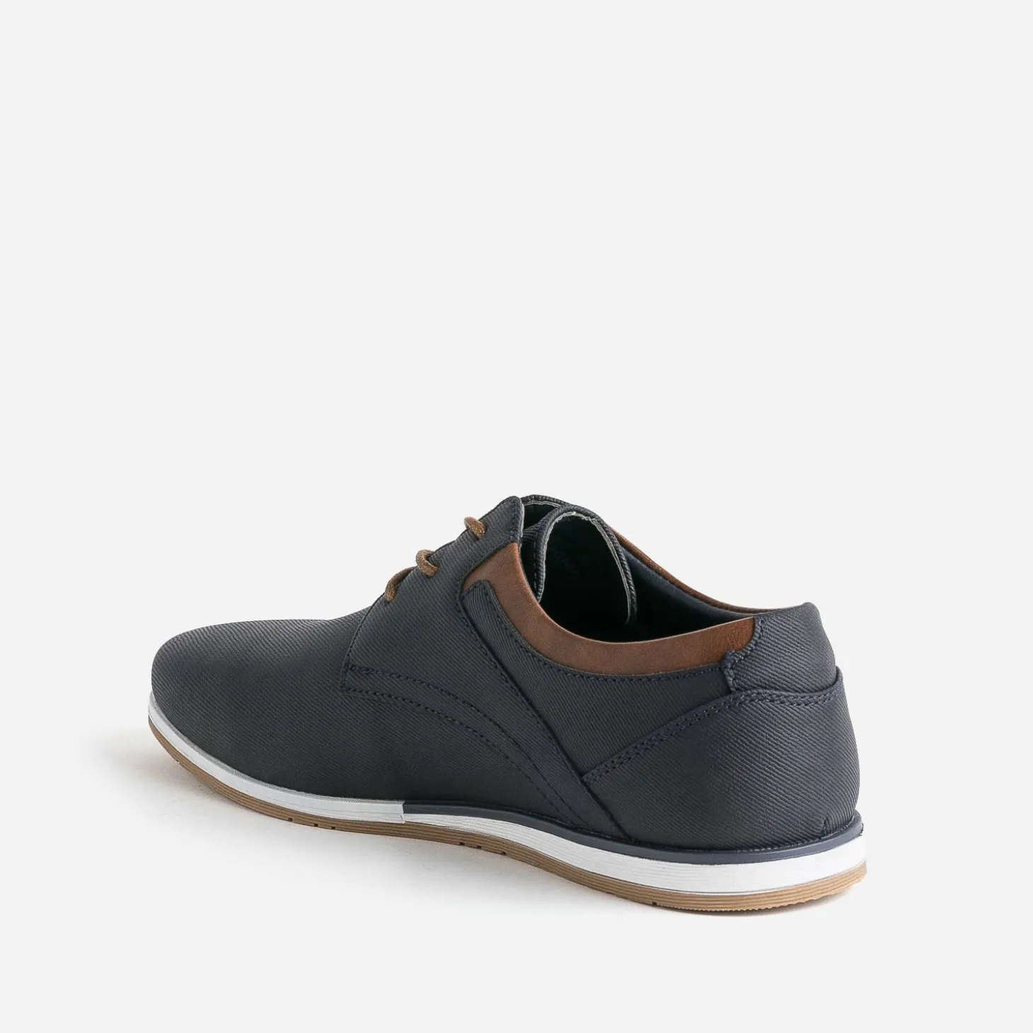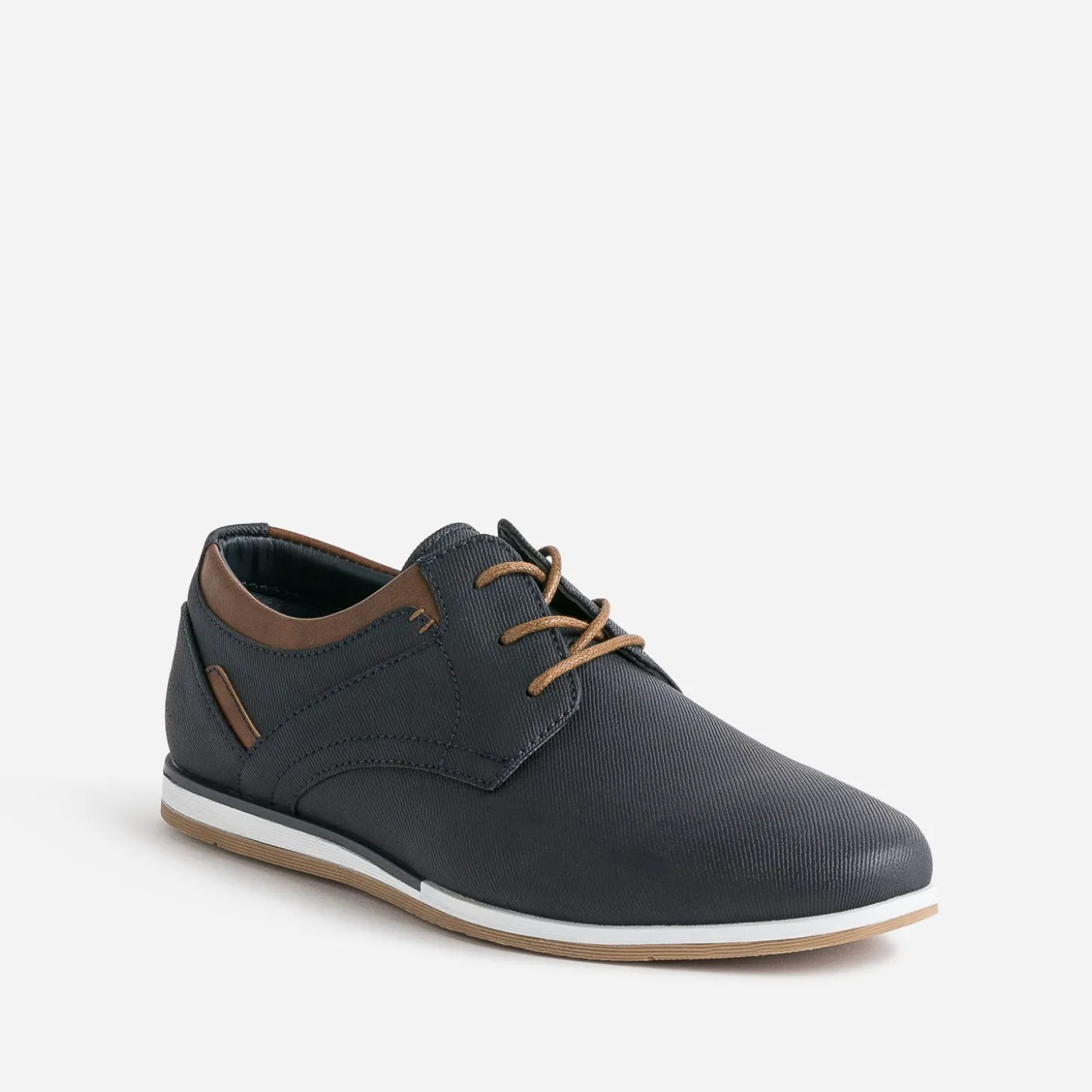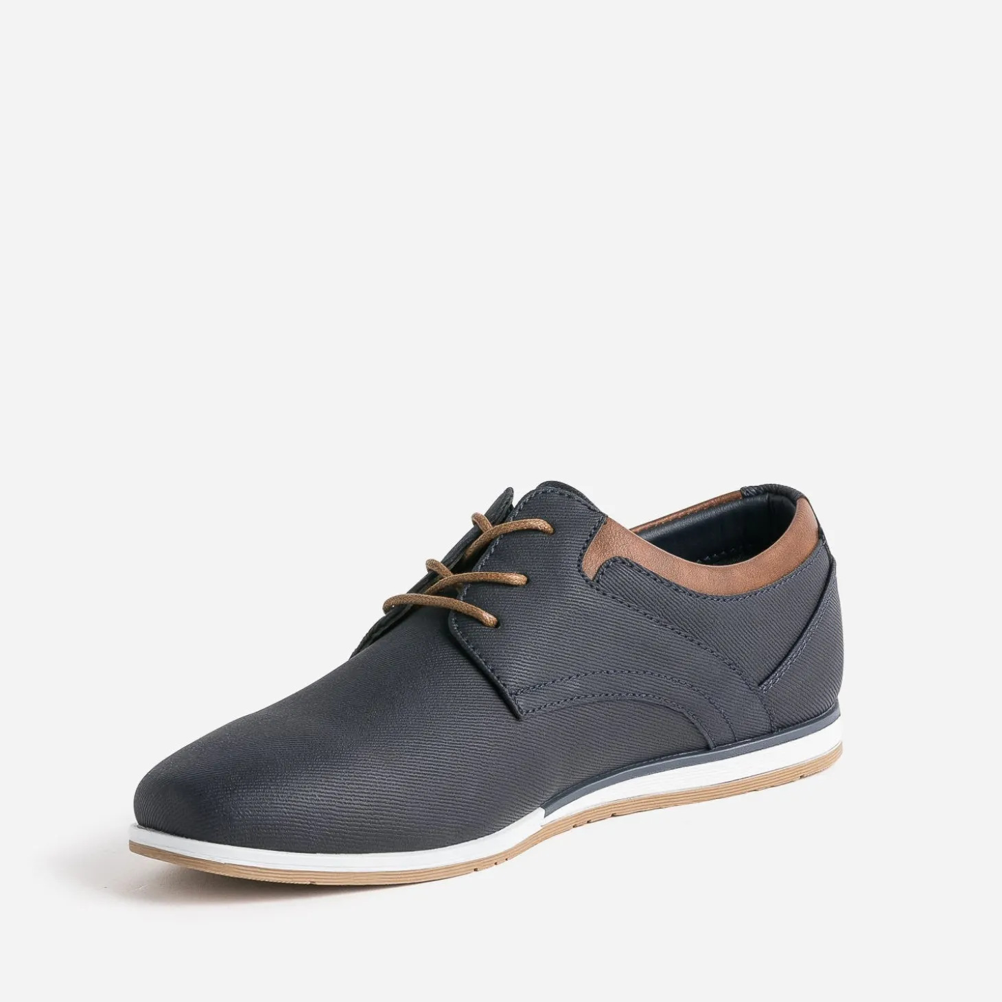 Matière synthétique rainurée, doublure textile chinée, détails marron, ce derby pour garçon s’invite dans le dressing d’été. Il séduit par une semelle tricolore légèrement compensée pour plus de confort et un style plus décontracté.