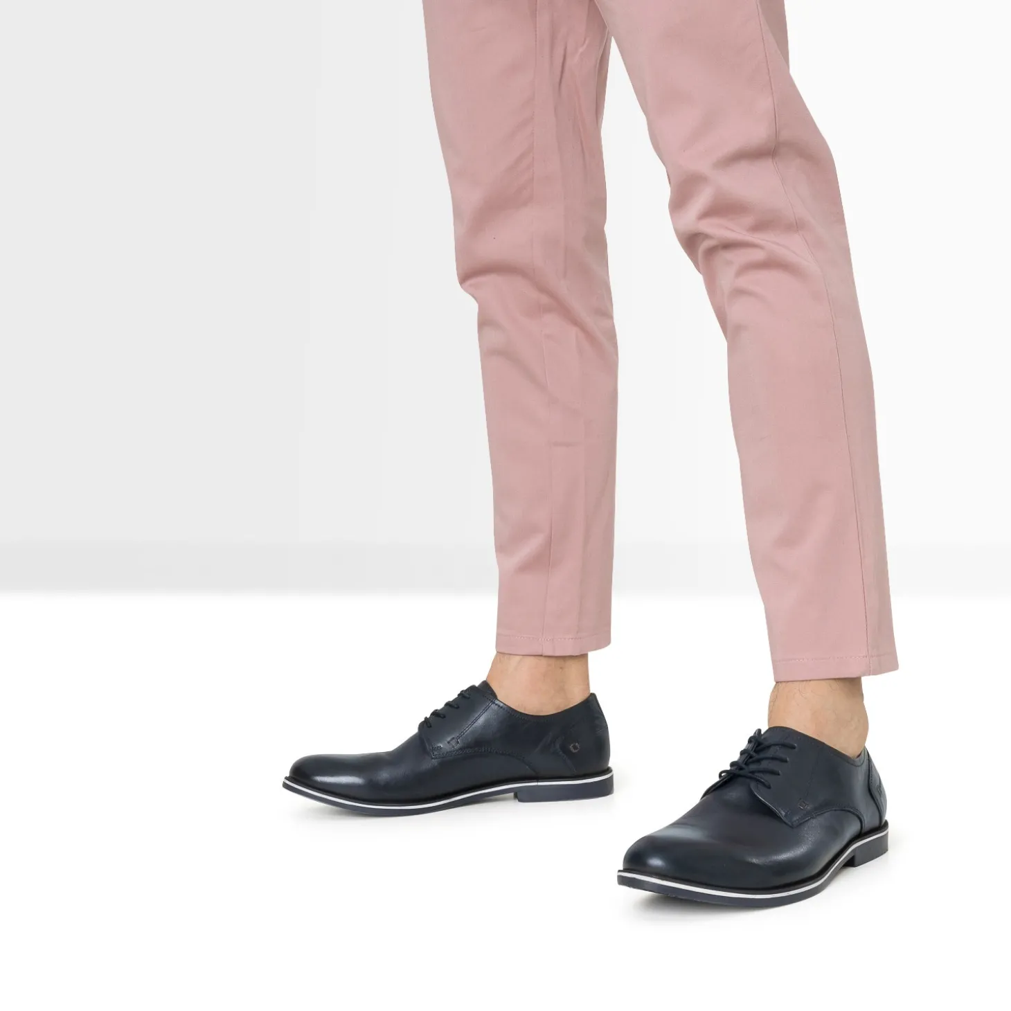 Le derby est une valeur sûre du shoesing masculin, en toutes saisons. Surprenant par son cuir ultra lisse, il se décline en coloris marine, ton sur ton avec la semelle, le lacet rond ciré, la doublure et les surpiqûres. Son identité ? C’est une rayure blanche contrastée qui souligne la semelle. Associez-le à une chemise blanche et un pantalon chino beige.