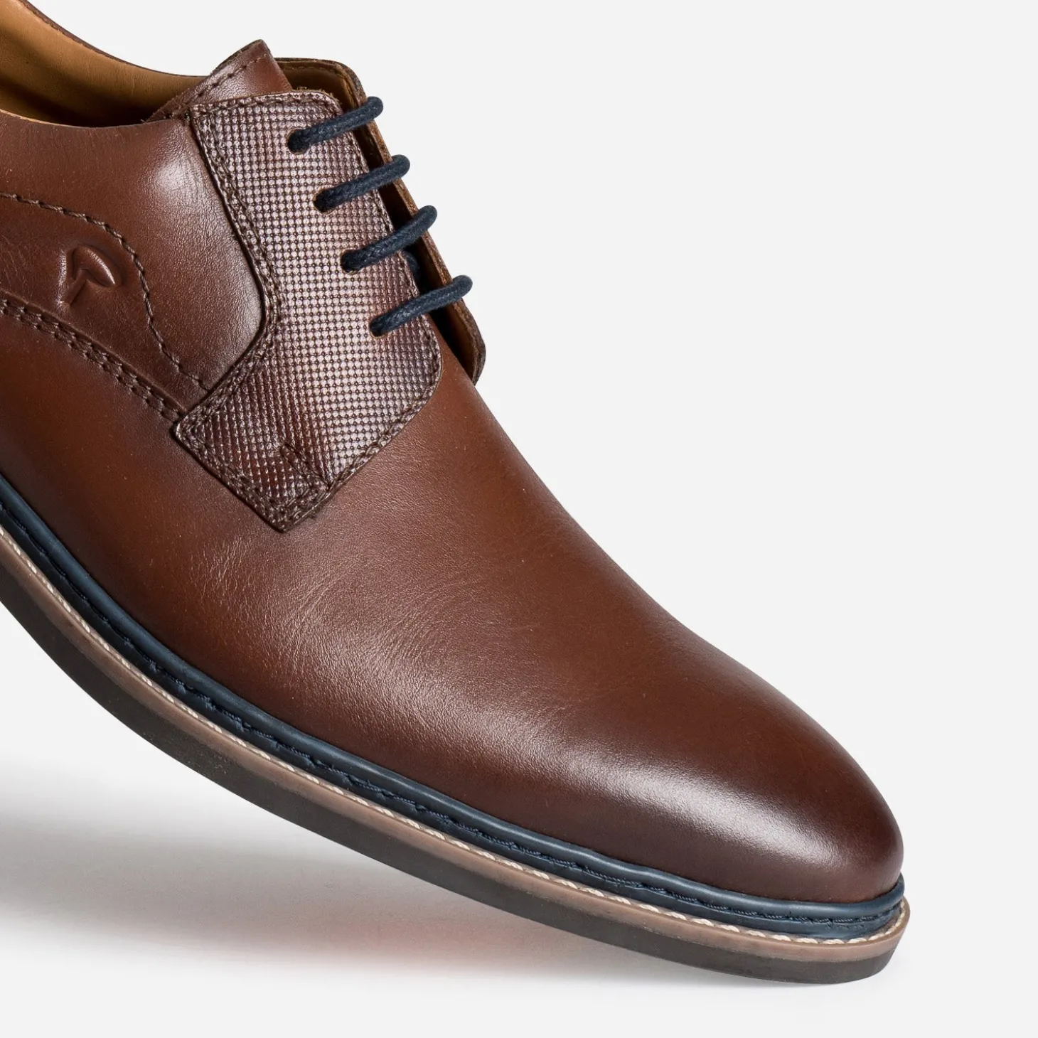 Laissez-vous tenter par le derby en cuir pour homme. Coloris cognac, il se laisse rehausser de touches bleu marine sur la trépointe, le contrefort et le lacet. Un modèle phare en toutes saisons, signature d’un style élégant et intemporel.