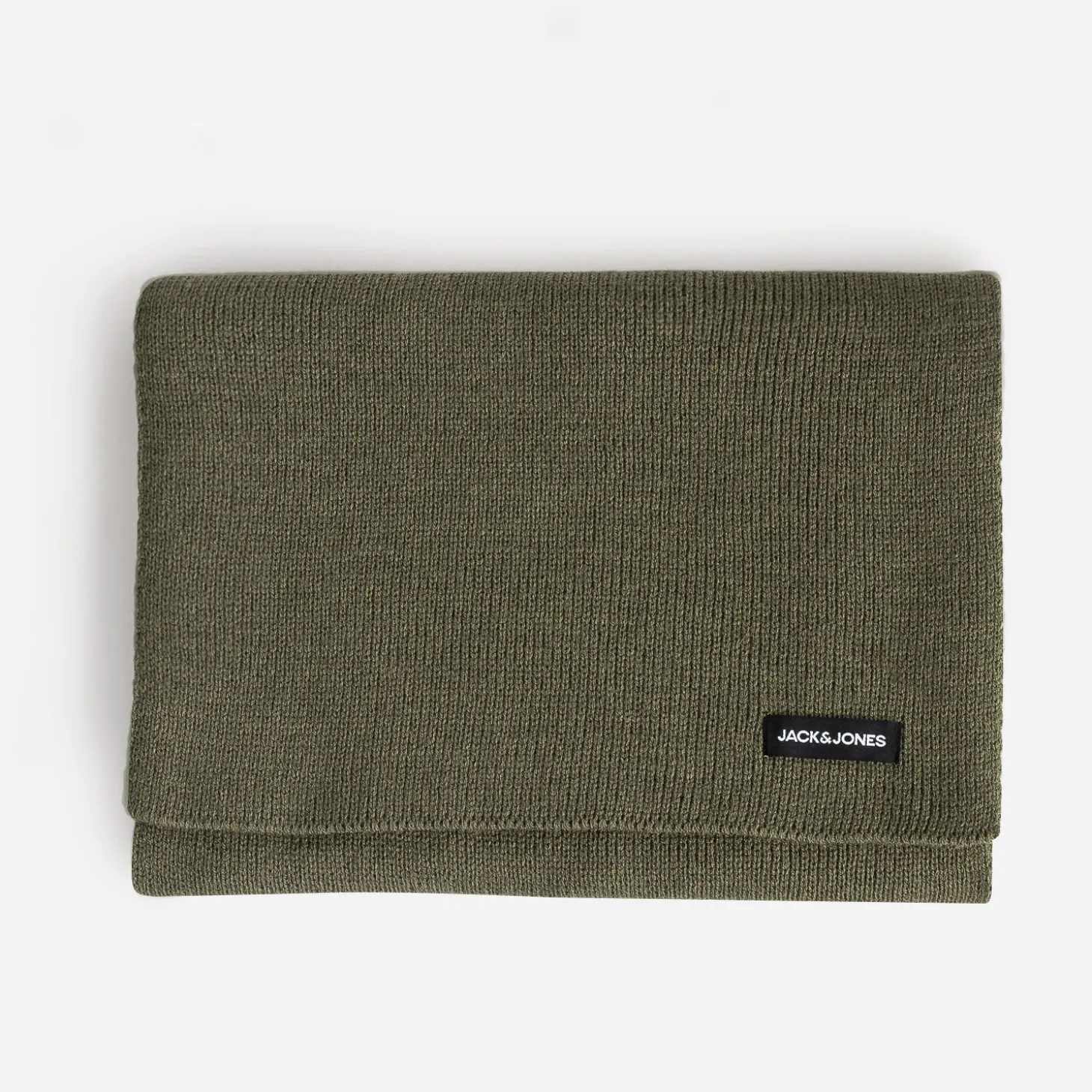 Réchauffez vos looks d’hiver avec sobriété. Posez l’écharpe kaki chiné en tricot sur un pull col roulé beige, un jean gris et une parka kaki.